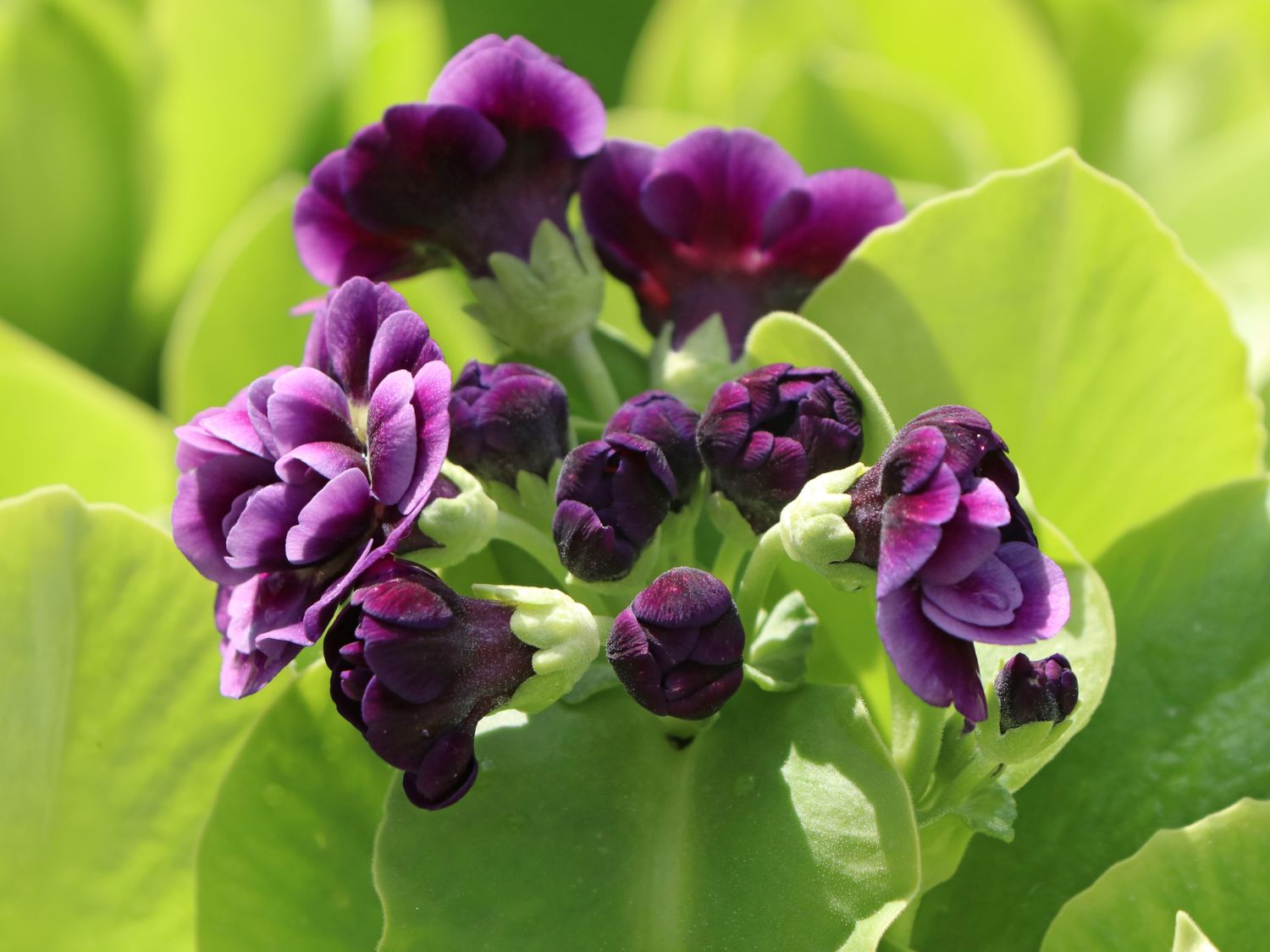 Das Alpen-Aurikel 'Reni' ist ein hinreißender Frühjahrsblüher, der den Gärtner mit seiner langen Blütezeit und dem reichen Flor bezaubert. Im Steingarten und im Alpinum sorgt es für intensive Farbtupfer. Die Pflanze, auch als Bastard-Aurikel bekannt, ist wintergrün, winterhart und pflegeleicht. Bereits im zeitigen Frühjahr, wenn im Garten erst wenige Farben zu sehen sind, entfaltet (bot.) Primula x pubescens 'Reni' zauberhafte Blüten. Sie sind dicht gefüllt und leuchten in einem kräftigen Violett, das zum Rand der Blütenblätter hin in ein zartes Lila verblasst. Ihr helles Zentrum schimmert beinahe gelblich. Das Alpen-Aurikel 'Reni' zeichnet sich durch einen Wuchs in festen, grundständigen Rosetten aus. Es bildet kurze, aufrechte Stängel und dichtes, üppiges Blattwerk und wirkt herrlich kompakt. Die Staude erreicht eine Wuchshöhe zwischen 15 und 20 cm, die Breite beträgt 20 bis 25 cm. Auf einem Quadratmeter finden fünfzehn bis siebzehn Pflanzen dieser Sorte ihren Platz. Der Gärtner pflanzt sie in Abständen von rund 25 cm ein. Auf diese Weise entsteht ein herrlich dichter Pflanzenteppich. Bereits im April erfreut das Alpen-Aurikel 'Reni' mit seinem reichen Flor, der den Garten bis Mai schmückt. Die gefüllten Blüten sind klein und kronröhrig. Sie stehen in dichten Dolden zusammen und entzücken das Auge mit ihrer anmutigen Schönheit. Mit ihrem leuchtenden Violett und der hellen Blütenmitte sorgen sie für ein lebendiges Farbenspiel.