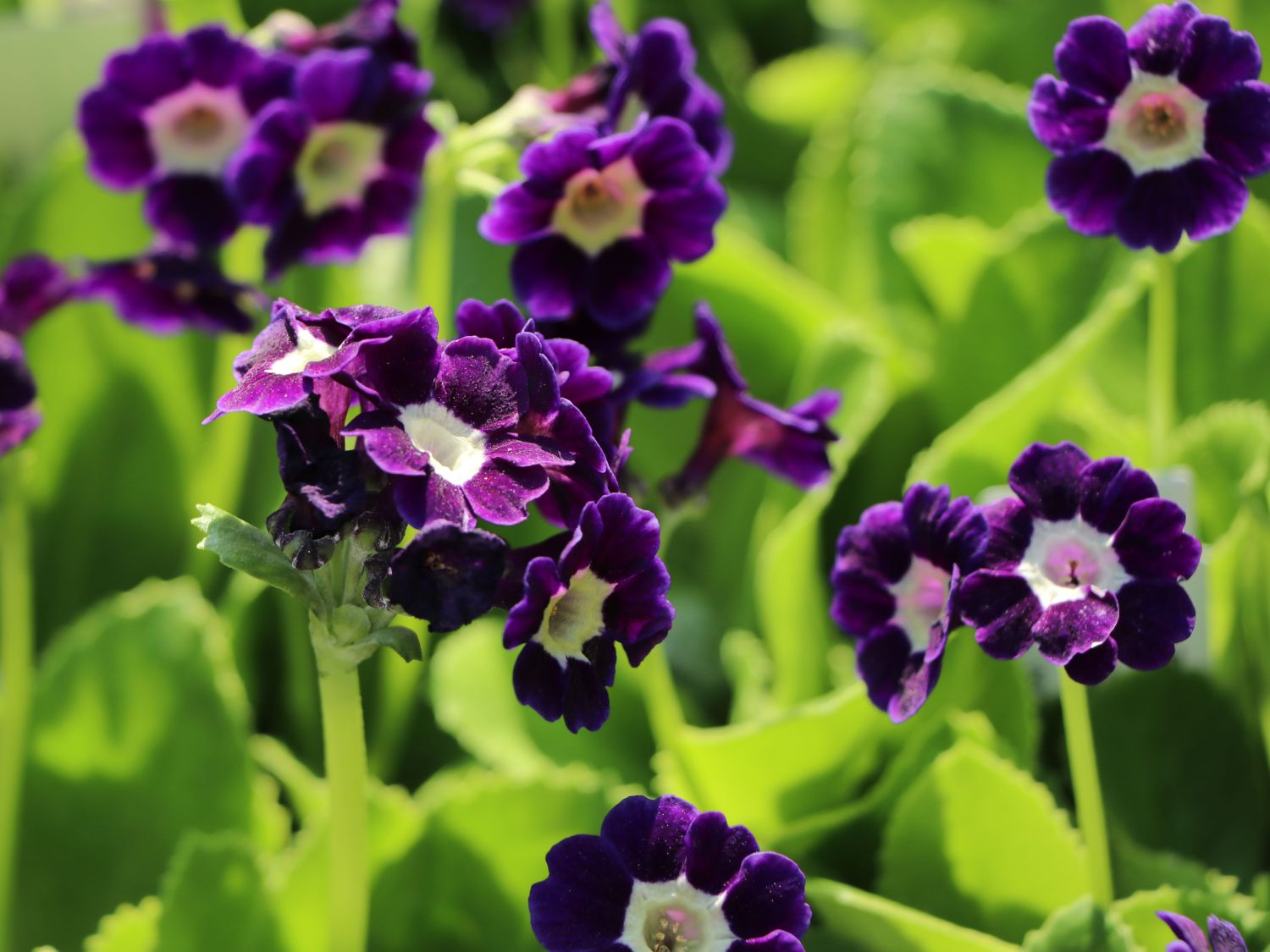 Das Alpen-Aurikel 'Vroni' besitzt Blütenblätter, die in einem intensiven dunklen Violett leuchten, welches sich stark von der creme-gelben Blütenmitte abhebt. Üppiges Blattwerk in frischem Grün rundet das hinreißende Farbenspiel ab. Das Alpen-Aurikel 'Vroni' sorgt in Alpengärten, Steinanlagen und in Pflanzgefäßen für romantische Farbtupfer.