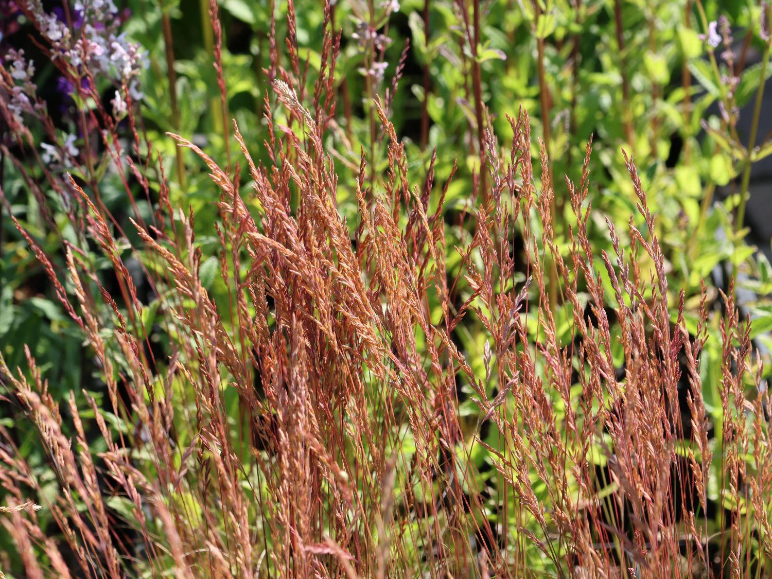 Der Amethyst-Schwingel 'Walberla' beeindruckt mit dem einzigartigen Farbenspiel seines feinen Laubes und der grazilen Blüten. Er ist ein wunderschönes Ziergras, das viele Verwendungsmöglichkeiten bietet. Seine Laubblätter sind lang, schmal, lineal und glattrandig. Im Frühjahr und im Frühsommer zeigen sie ein sattes Grün. Für eine Überraschung sorgen sie im Spätsommer und im Herbst, wenn die Blattspitzen sich verfärben und in kräftigem Rot funkeln. Das wintergrüne Laub ist auch in der vegetationsarmen Jahreszeit eine Augenweide im Garten. Von Mai bis Juli begeistert (bot.) Festuca amethystina 'Walberla' mit anmutigen, zarten Blütenrispen. Mit ihrer rotbraunen Färbung harmonieren die Blüten perfekt mit dem Laub und bieten ein farbenfrohes Schauspiel. Der Amethyst-Schwingel 'Walberla' wächst aufrecht und horstig. Später hängen seine Laubblätter und die Blütenstängel anmutig bogig über. Er erreicht eine Höhe von 20 bis 40 Zentimetern und wird 30 bis 40 Zentimeter breit. Die Sorte stammt von dem Züchter Till Hoffmann.