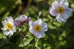 Die Anemone 'Dreaming Swan' begeistert mit ihren großen, leicht gewellten Blüten. Zuerst bilden sich die violetten Knospen, diese öffnen sich und geben die einfachen, weißen Blüten frei. Auf der Rückseite sind drei Blütenblätter violett eingefärbt. Die (bot.) Anemone x cultorum 'Dreaming Swan' überzeugt durch ihren romantischen Auftritt jeden Pflanzenliebhaber und ist ein Blütentraum im Spätsommer und Herbst. Sensationell ist die lange Blütezeit der Anemone 'Dreaming Swan'. Von Juni bis in den Oktober blüht die Staude unermüdlich und zählt daher zu den Herbst-Anemonen. Es ist ein fantastischer Anblick, wenn sich die Blüten der Anemone 'Dreaming Swan' ® sanft im Wind bewegen und wie träumende Schwäne wirken. Kein Wunder, dass viele sie auch Windröschen nennen. Das Gesamtbild dieser Pflanze strahlt pure Harmonie aus. Die zarten weißen Blütenblätter breiten sich schalenförmig flach aus. In der Mitte zieht ein Kreis aus Staubgefäßen in intensivem Gelb die Blicke auf sich. Die Blütenblätter sind leicht gewellt, was ihnen ein federartiges Aussehen verleiht. Die tiefgrünen Blätter heben sich von den hellen Flor markant ab. Die Blätter der Anemone sind drei- oder mehrteilig gefiedert und stehen an dunkelroten Trieben.