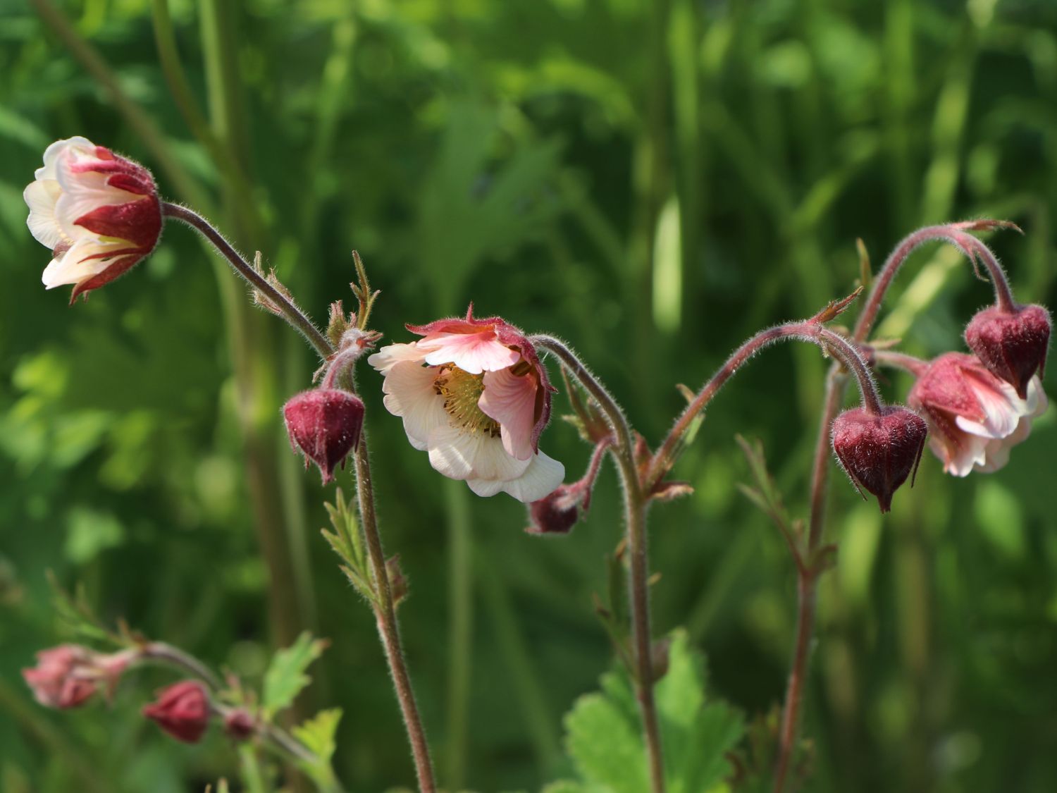 Die Bach-Nelkenwurz 'Pink Frills' lässt die Herzen von Blumenfreunden höher schlagen. Blumenliebhaber, die ihrer grünen Oase eine naturnahe Optik verleihen, ohne auf dekorative Blütenteppiche zu verzichten, lieben diese zierliche Staude. Die Bach-Nelkenwurz (bot. Geum rivale) ist in Deutschland beheimatet, die Sorte 'Pink Frills' eine Züchtung des niederländischen Gärtners Coen Jansen. Gartenbesitzer, die dem ebenso filigranen wie robusten Blühwunder eine Heimat im Hausgarten anbieten, erleben von Mai bis Juli eine sagenhafte Farbenpracht. Bienen, Schmetterlinge und andere Insekten erfreuen sich ebenfalls an den zartrosa Blüten der Bach-Nelkenwurz 'Pink Frills'. Das ist aktiver Naturschutz von seiner attraktivsten Seite. Die kräftigen, samtigen Stiele der Geum rivale 'Pink Frills' wachsen aufrecht empor und münden in der hübschen nickenden Blüte in zartem Rosé. Am Fuß der Stiele sitzen die gefiederten, wintergrünen Blätter der Staude. Im Gegensatz zu anderen Stauden, deren Blätter den Stängeln entspringen, kommt das Laub der Bach-Nelkenwurz direkt aus der Blattrosette, die auf der Bodenoberfläche aufliegen. Der Name Bach-Nelkenwurz ist nicht zufällig gewählt. Die aparte Staude aus der Familie der Rosengewächse (Rosaceae) ist von Natur aus nah am Wasser gebaut. Ihre wilden Verwandten wuchsen einst in großer Zahl an vielen Teich- und Bachrändern, an Gräben, auf Feuchtwiesen und moorigen Flächen. Dieser gezähmten Staude macht der Gärtner mit ähnlich beschaffenen Standorten eine große Freude. Die genügsame Bach-Nelkenwurz 'Pink Frills' bedankt sich für diese Mühe mit einer sagenhaften Blütenpracht. Das anmutige Geschöpf liebt die Gesellschaft von anderen Artgenossen und Feuchtpflanzen. Beispielsweise neben dem Sumpf-Vergissmeinnicht spielt die 'Pink Frills' ihre Stärken gekonnt aus. Und das, ohne ihren Nachbarn die Schau zu stehlen.