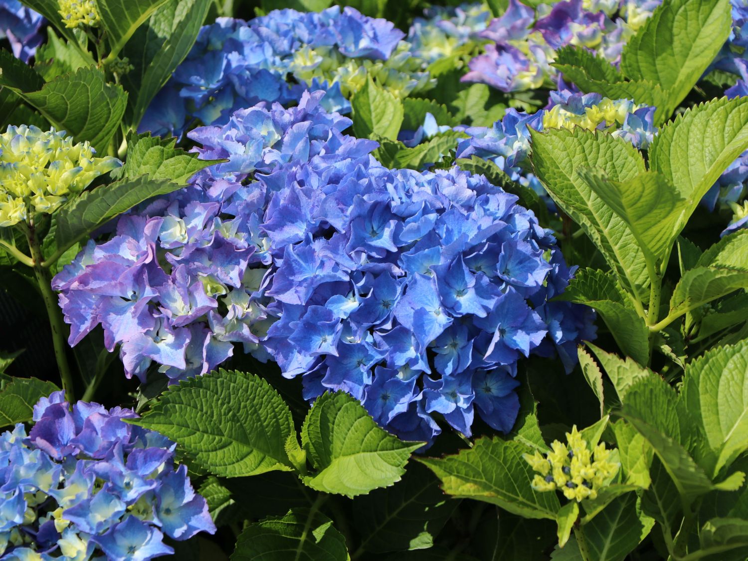 Auf eine Höhe von bis zu 120 Zentimetern entwickeln sich die prachtvollen Blütenbälle dieser zauberhaften Bauernhortensie. Die Ballhortensie 'Baby Blue ®' ist eine neue traumhafte Kreation des niederländischen Züchters Andre van Zoest. Die (bot.) Hydrangea macrophylla 'Baby Blue ®' hält, was ihr Name verspricht. Die blau blühenden Kugeln bestehen aus einer Vielzahl zusammengesetzter Einzelblüten. Die leuchtend blauen Blütenblätter verlaufen zur Blütenmitte in ein strahlendes Weiß. Der Gesamteindruck ist ein lebendiges und fröhliches Baby-blau. Der einzigartig schöne Blütenreichtum betört bei ausreichender Bodenfeuchtigkeit in der Zeit von Juni bis Oktober das Auge des Gärtners. Bereits im Vorjahr legt diese schöne Hortensie ihre Knospen für die kommende Gartensaison an. Deshalb ist das starke Zurückschneiden im Frühjahr nicht empfehlenswert. Die ungeschnittenen Blüten sind im verblühten Zustand dekorative Elemente des herbstlichen Gartens. Die Sonne scheint, im Garten grünt und blüht es. Mit diesem Schmuckstück zieht ein traumhaft schönes Gewächs in das heimische Areal ein.