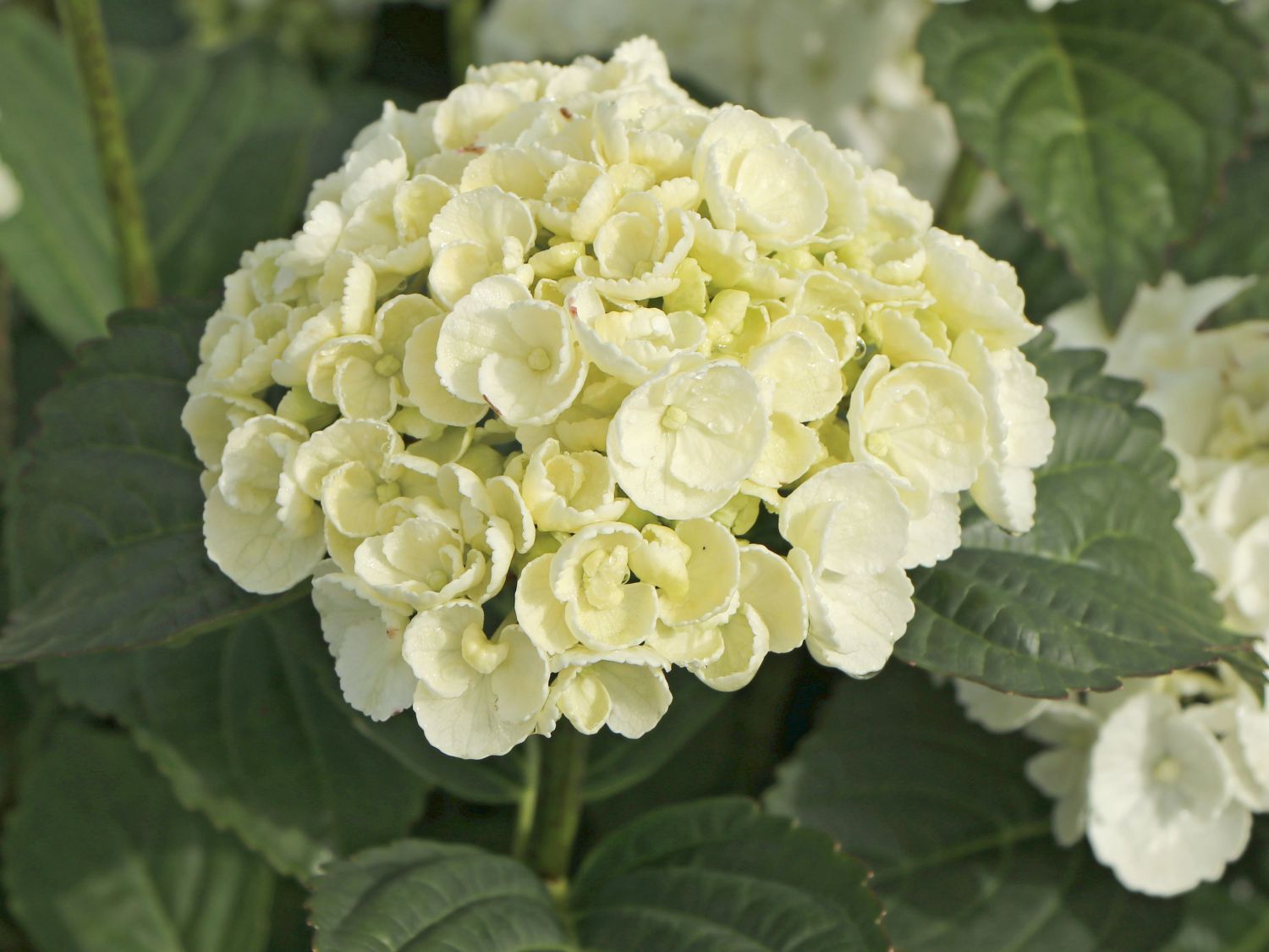Die Ballhortensie Royalty ® Collection 'Curly Wurly ® White' zieht mit ihren gekräuselten, muschelförmigen Blüten alle Blicke auf sich. Auf ihren großen Blütendolden drängen sich schneeweiße Blütenbecher dicht zusammen und erzeugen einen bewegten Eindruck. Die unebene Oberfläche der Blütenbälle unterscheidet diese exklusive Selektion deutlich von dem bekannten Bild einer Hortensienblüte. Seine Individualität führt der maximal 125 cm hohe Halbstrauch gerne als Solitärpflanze an einem zentralen Punkt im Garten vor. Halbschattige Balkone und Terrasse lassen sich mit einer (bot.) Hydrangea macrophylla Royalty ® Collection 'Curly Wurly ® White' wirkungsvoll aufwerten. Magische Effekte entstehen, wenn der Halbstrauch unter Gehölzen steht. Weiße Blüten leuchten im Dämmerlicht hell auf und verlängern das abendliche Gartenvergnügen. Das großblättrige Laub dieser einzigartigen Pflanze ordnet sich mit seinem warmen dunkelgrünen Ton unauffällig in eine bestehende Gehölzgruppe ein. Ihre sensationellen gekräuselten Schaublüten ziehen in jeder Pflanzsituation bewundernde Blicke auf sich.