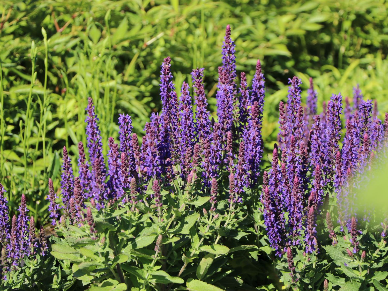 Der Blüten-Salbei 'Blue Bouquetta' ist in der Sonne am besten aufgehoben. Weil ihm Hitze und ein gewisser Grad an Trockenheit nichts ausmachen, stellt er eine ideale Wahl für "schwierige" Standorte mit Hitzestau dar; beispielsweise vor einem geschlossenen, nach Süden ausgerichteten Mauerwerk - dort, wo Hitze kaum entweichen kann, was vielen anderen Blühpflanzen die Lebensfähigkeit nimmt. Der Boden präsentiert sich optimalerweise trocken bis frisch, mit einer durchlässigen Struktur, die überschüssige Feuchtigkeit zügig in die Bodentiefe ableitet und dennoch ausreichend Wasser speichert. Humus fördert die gleichmäßige Entwicklung der Triebe, während ein mäßig nährstoffreiches Milieu die Ausbildung kräftiger Blütenstände unterstützt. Im Bereich der Pflege ist bei (bot.) Salvia nemorosa 'Blue Bouquetta' vor allem auf einen maßvollen Umgang mit Wasser zu achten, um dauerhaft nasse Bedingungen zu vermeiden, die das Wurzelwerk belasten. Eine gezielte, aber niedrig dosierte Nährstoffgabe jedes Frühjahr ergänzt die Bodenvorräte und sorgt für einen vitalen Start in die Saison. Nach der Sommerblüte treibt ein kräftiger Rückschnitt der verblühten Stängel die Nachblüte an, die oftmals ebenso intensiv ausfällt wie die vorhergehende Hauptblüte. Im Herbst zieht sich das Blattwerk zurück, wodurch der Blüten-Salbei 'Blue Bouquetta' seine Energie in das unterirdische System verlagert und in der Folge eine Frosttoleranz bis etwa -28 °C entwickelt- eine Widerstandskraft, die Kälteschutzmaßnahmen erübrigt.