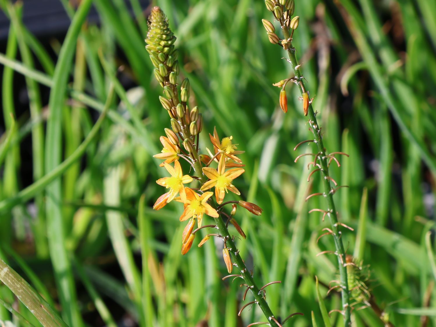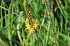 Die Brenngeleepflanze, auch bekannt als Bulbine oder Katzenschwanzpflanze, gehört zur Familie der Liliengewächse. Ihre schlanken, rosettenartig angeordneten Blätter können wie andere Sukkulenten Wasser speichern und ähneln äußerlich dem allseits bekannten Schnittlauch. Sie enthalten ein Aloe Vera ähnliches Gel mit antibakterieller Wirkung als schnelle erste Hilfe gegen das eine oder andere kleine Zipperlein. Aufgrund dessen wird sie gerne als "Erste-Hilfe-Pflanze" bezeichnet. Geerntet werden können die Blätter der Brenngeleepflanze das ganze Jahr über, vorausgesetzt die Pflanze überwintert frostfrei. Zwischen Juni und September erheben sich über den schlanken, frischgrünen Blättern von (bot.) Bulbine frutescens die langstieligen, gelb-orangefarbenen Blütentrauben. Die sind ca. 20 cm lang und bestehen aus unzähligen kleinen, sternförmigen Einzelblüten. Die Form der Blütentrauben erinnert an einen Katzenschwanz, worauf der Name "Katzenschwanzpflanze" zurückzuführen ist. Aufgrund der fehlenden Winterhärte wird diese Pflanze vorwiegend in Kübeln auf Balkon und Terrasse oder als Zimmerpflanze kultiviert. Unter optimalen Bedingungen schiebt diese blühwillige Pflanze immer neue Blüten nach. Das setzt u. a. den richtigen Standort voraus. Dieser sollte sonnig bis halbschattig und warm sein. Vom Frühjahr bis zum Spätsommer fühlt sich die Brenngeleepflanze an einem geschützten Standort im Freien wohl beispielsweise in einem Steingarten. Wird sie ganzjährig als Zimmerpflanze gehalten, sollte man ein helles Plätzchen vor einem Ost- oder Westfenster bevorzugen.