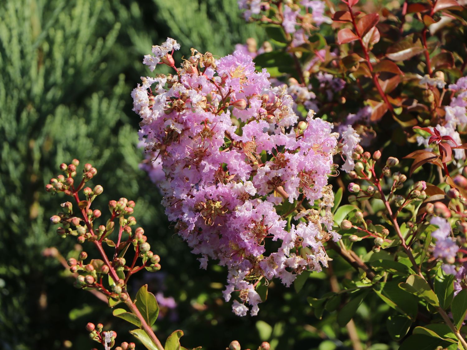 Die Chinesische Kräuselmyrte 'La Fayette' ist auch unter den Namen Indische Lagerströmie oder als Affenrutschbaum bekannt. Die schöne Pflanze lässt sich ganzjährig in den Boden einsetzen. Solange die Erde im Winter nicht durchgefroren und im Sommer für eine ausreichende Wasserzufuhr gesorgt ist, lässt sich die Pflanze jederzeit in den Boden einsetzen. Lagerstroemia indica 'La Fayette' ist eine beliebte Pflanze, die im Kübel Balkone und Terrassen mit ihrer Anwesenheit aufhübscht. Im Beet ist sie eine strahlende Solitärpflanze. Mit der Chinesischen Kräuselmyrte 'La Fayette' kommt ein einzigartiger Charme in den Garten!