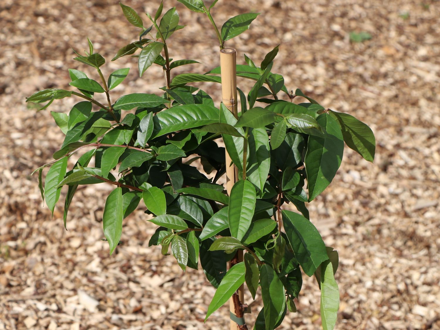 Die Echte Guave 'Fresa' ist ein pflegeleichter tropischer Obstbaum. Ihre Früchte schmecken köstlich süß-säuerlich und erinnern an den Geschmack von Erdbeeren. Erdbeerguaven sind immergrüne Sträucher und erreichen mit 2 Metern eine moderate Höhe. (Bot.) Psidium guajava 'Fresa' wächst zu einem mehrstämmigen, gut verzweigten Busch mit grauer Rinde heran. Diese blättert zuweilen wie bei einer Platane ab. Die darunter liegende frische Rinde leuchtet anfänglich dekorativ in Farbtönen von grün bis rotbraun. Auch das Laub der Echten Guave ist eine Augenweide. Vertiefte Blattadern strukturieren die bis zu 15 Zentimeter großen, länglich ovalen Blätter. Ende April erscheinen in den Blattachseln über den Tragblättern bis zu 2 cm große, fünfzählige, weiße Blüten. Die Echte Guave 'Fresa' ist selbstbefruchtend, eine Unterstützung mittels Pinselbestäubung ist nicht nötig. Nach der Befruchtung entstehen runde Beeren, die nach einer Reifezeit von 3 bis 4 Monaten geerntet werden können. Reife Früchte duften und haben eine dunkelrote Schale. Das weiß-rötliche Fruchtfleisch erinnert im Geschmack an Erdbeeren. Das Fruchtfleisch lässt sich wie bei einer Kiwi bequem aus der halbierten Frucht löffeln.