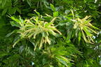 Die Esskastanie 'Bournette' ist eine ertragreiche, mittelfrüh reifende Sorte aus Frankreich, die große Früchte hervorbringt. Bereits nach 2 bis 3 Jahren trägt sie reichliche Früchte mit dem charakteristischen Aroma der Esskastanie. Sie stammt ursprünglich aus Kleinasien, Afrika und Südeuropa. Wahrscheinlich brachten die Römer sie vor etwa zweitausend Jahren über die Alpen zu uns und sorgten so dafür, dass sie in Mitteleuropa heimisch wurde. Die Sorte 'Bournette' erreicht eine Höhe von 6 bis 9 Metern und beinahe dieselbe Breite in der Ausladung. Ihr Wuchs ist beeindruckend und entwickelt eine ausladende, dicht verzweigte Krone, die sowohl Schatten spendet als auch optisch ein Highlight ist. Typisch für diese Esskastanie, bot. Castanea sativa 'Bournette' genannt, sind neben ihrem markanten Wuchs die Blätter. Sie sind grün, länglich und wechselständig angeordnet und sie glänzen leicht. Im Herbst wechselt das grüne Laub zu einem attraktiven herbstlichen Gelb. Zwischen Juni und Juli erscheinen die Blüten, wobei die männlichen Blüten einen grünlich Farbton besitzen und die weiblichen eher unauffällig sind. Ihre leckeren Früchte können ab September geerntet werden. Die Früchte des Baumes, bekannt als Maronen, sind ein echter Gewinn für Hobbygärtner und Feinschmecker. Meist im Dreierpack sind die Maronen anfangs mit einer stachligen grünen Hülle umgeben, welche später aufplatzt und die Fruchtkörper frei gibt. Gut zu wissen: Die Esskastanie wurde im jahr 2018 als Baum des Jahres gekürt. Um eine reichere Ernte zu erzielen, pflanzt man idealerweise zwei Esskastanien, die sich gegenseitig befruchten und so den Fruchtansatz verbessern.