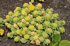 Das Fettblatt 'Atlantis' ist eine außergewöhnlich ästhetische Staude, die durch ihre Vielseitigkeit, bezaubernde Blütenpracht und ihr dekoratives Laub plus Winterhärte und Pflegeleichtigkeit überzeugt. Es handelt sich um eine kompakt wachsende Sukkulente, die polsterartig und zugleich horstig erscheint. Mit einer Wuchshöhe bis 40 cm und einer Breite bis zu 35 cm entwickelt sie sowohl in kleinen Gefäßen als auch in großzügigen Pflanzungen ihre außergewöhnliche Ausstrahlung. Der niedrige, dennoch stabile Aufbau lässt dichte Teppiche entstehen, die den Boden zuverlässig bedecken. Diese Eigenschaft macht sie auch zu einer funktionalen Pflanze für Garten- und Freiflächen, die Unkraut das Wachstum erschwert. Ihre Blätter sind eiförmig, dickfleischig sowie rosettenartig aufgestellt und dienen als wichtiger Wasserspeicher. Besonders auffällig ist die Panaschierung des Laubs. Ein frisches Grün ummantelt eine leuchtend gelben Zeichnung, wodurch ein panaschiertes Bild entsteht. Dieses zweifarbige Blattwerk ist ganzjährig präsent, da es sich um immergrünes Laub handelt. Selbst im Winter behält die Pflanze damit ihren dekorativen Ausdruck und bildet so einen besonderen Blickfang in den ansonsten kargen und grauen Wintermonaten. Der kompakte Habitus, die dichte Belaubung und die intensive Zeichnung geben dem (bot.) Sedum takesimense 'Atlantis' eine unverwechselbare Note, die sie deutlich von anderen Fettblatt-Arten abhebt. Ab Juli setzt die Blütezeit ein, die sich bis in den September erstreckt. Dann erscheinen zahlreiche kleine, sternförmige Blüten, die in lockeren doldenartigen Anordnungen über dem Laub residieren. Ihre Farbe ist ein kräftiges, strahlendes Gelb, das mit den panaschierten Blättern eine besonders harmonische Komposition bildet. Unzählige kleine Einzelblüten sitzen an den Blütenständen, wodurch sie im Idealfall fast die ganze Lauboberfläche bedecken. Für Nutzinsekten stellt die Blütezeit ein wahres Fest dar: Bienen, Hummeln und andere Bestäuber finden in den Blüten reichlich Nektar und Pollen, sodass die Pflanze eine wichtige ökologische Rolle erfüllt. In der Gartengestaltung bietet das Fettblatt 'Atlantis' unzählige Optionen. Es ist sowohl für Einzelstellungen geeignet als auch für Gruppenpflanzungen, bei denen die polsterartige Struktur besonders eindrucksvoll wahrzunehmen ist. In gemischten Beeten und Rabatten setzt es durch das auffällige Blattmuster farbige Akzente, die stilvoll allerlei Pflanznachbarn mit gleichen Standortansprüchen ergänzen. Besonders im Steingarten, wo trockene Standorte dominieren, erweist sich diese Sukkulenten-Sorte als wertvolle Bereicherung. Auch auf Dachterrassen, in Pflanzgefäßen oder zur Begrünung von Trockenmauern findet sie ihren Platz. Naturbewußte Hobbygärtner entscheiden sich gern für dieses imposante Gewächs, weil es unter anderem auch als Insektenweide fungiert, während sie in urbanen Pflanzkonzepten ihre Anspruchslosigkeit begeistert. Selbst in Kübeln stellt sie ein dekoratives Element dar, sei es als Solitär oder als kontrastreicher Begleiter zu höher wachsenden Pflanzen.
