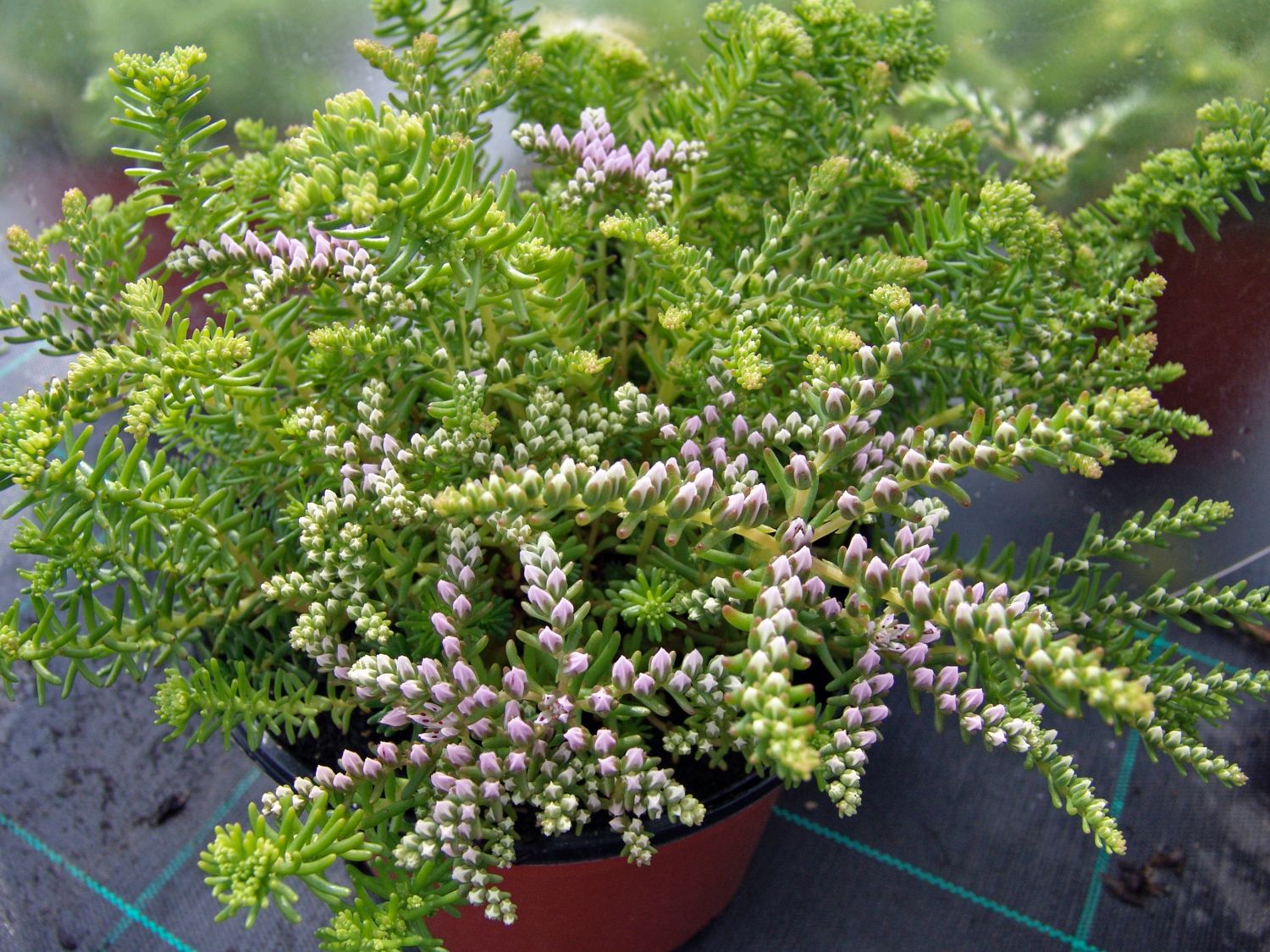 Sedum pulchellum 'Sea Star' bevorzugt frische, feuchte und durchlässige Gartenerde. Von Mai bis Juli erfreut sich der Gärtner an der vielzähligen rosa Blütenpracht, die einen schönen Kontrast zu den saftig grünen nadelähnlichen Blättern bilden. Die Staude ist herrlich pflegeleicht und zeigt sich gut winterhart. Im Herbst bis Spätherbst zieht sich das Fettblatt 'Sea Star' in die wohlverdiente Winterruhe zurück. Das ist der beste Zeitpunkt für einen Rückschnitt. Alle zwei bis drei Jahre empfiehlt sich das Teilen der Pflanze. Dazu ist sie auszugraben, von schwachen Trieben und Wurzeln zu befreien und erneut an anderer Stelle erneut einzusetzen. Auf diese Weise entwickelt sich ein Blütenteppich, der seinesgleichen sucht. Schmetterlinge und Bienen umschwirren die doldenförmigen Blütenarme auf der Suche nach Nahrung. Die Triebe breiten sich weit aus und schmücken sich mit nadelähnlichen Blättern. Lediglich die blütentragenden Triebe wachsen in die Höhe, von oben betrachtet, erinnert die Form an einen Seestern, was den Sortennamen schön unterstreicht. Die kleinen rosa Blüten sind vier- bis siebenzählig. Die weißen bis blassvioletten Staubfäden sind von dunkelroten Staubbeuteln gekrönt. Die trockenen, ledrigen Balgfrüchte enthalten kleine hellgelbe bis hellbraune Samen. Durch Selbstaussaat entsteht eine wiederkehrende Pflanzenpracht.