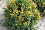 Der Fingerstrauch FIRST EDITIONS ® 'Mandarin Tango' ist ein überragendes Gehölz in der Zwergversion, das Unmengen von leuchtenden Blüten aussät, zu dem sich ein außergewöhnlicher Wuchs mit zierlichem Laub gesellt und das sich durch wenig Pflegebedarf sowie einer ausgesprochen hohen Widerstandskraft auszeichnet. Die Blätter sind unaufdringlich klein, zierlich elliptisch geformt und mit einem hervorstechenden Blaugrün ausgestattet. Es wächst wechselständig an dem Strauch, an dem ab dem zeitigen Frühjahr zahlreiche Verzweigungen entstehen. So bildet sich ein dichtes, buschiges Laubwerk auf einer Höhe bis 70 cm sowie kompakten Breite bis maximal 50 cm. Er nimmt eine kugelartige Form an, indem sich von unten nach oben die Triebe von kurz nach lang entwickeln und sich von innen nach außen seitlich auslegen. Im Inneren dominieren aufrechte Triebe das Wuchsbild. Durch die unterschiedlich gelagerten und langen Zweige kommen spätestens im Juni die ausdrucksstarken Blüten rundherum heraus. (Bot.) Potentilla fruticosa FIRST EDITIONS ® 'Mandarin Tango' verfügt über eine immense Blühfreudigkeit, sodass fast eine Blütenkugel entsteht, die jede Umgebung zum Strahlen bringt. Dies beruht zudem auf der Blütenfarbe. Zu Recht trägt diese Sorte die Bezeichnung 'Mandarin Tango', denn hier tanzen die Blüten in einem satten Mandarinen-Orange bis Gelborange. Mehr an sommerlicher Ausdrucksstärke ist schwierig zu finden - erst recht als Zwergstrauch, der den Sommer bis in den Herbst mitnimmt und auf kleinstem Raum kultivierbar ist. Herausragend entpuppt sich ebenso seine Gabe, sich erstklassig anpassen zu können - ob im Beet, in Rabatten, unter Artgenossen oder Begleitpflanze von beispielsweise Rosen, Gräsern und Stauden oder als Solokünstler, der ein stilvolles Highlight punktgenau setzt. Er verträgt Hitze und kurzfristige Trockenheit. Deshalb ist er perfekt zum Pflanzen in steinigen Anlagen und dort, wo ein geringer Pflegebedarf erwünscht ist, wie beispielsweise auf dem Friedhof. Speziell hier, aber auch im heimischen Garten punktet der Fingerstrauch FIRST EDITIONS ® 'Mandarin Tango' überdies auch mit einem bodendeckenden Charakteristikum, wodurch sich die Arbeit für lästiges Unkrautziehen deutlich reduziert, je großflächiger dieses Blütenjuwel angelegt ist.