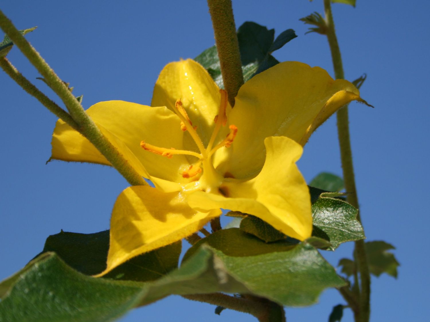 Der Flanellbusch 'Pacific Sunset' ® ist aus vielen Metern Entfernung sichtbar und ist ein beliebter Schattenspender. In seiner kalifornischen Heimat sorgt er so für die Abkühlung mancher Wanderer. Auch Vögel, Bienen, Hummeln und Schmetterlinge fühlen sich von diesem sanften Riesen angezogen. Sie alle suchen unter seinem grünen Blätterkleid Schutz und Nahrung. Im Frühling und Frühsommer zieren große, kelchförmige orange-gelbe Blüten sein Blätterkleid. Der Wuchs des Fremontodendron 'Pacific Sunset' ® ist sehr dicht und buschig. Bei der Wahl des Standorts für den Flanellbusch 'Pacific Sunset' ® gibt es einiges zu beachten. Die Pflanze braucht einen sehr sonnigen Standort und gedeiht am besten in lockerem, durchlässigen, bestenfalls sandigem Boden. Fremontodendron 'Pacific Sunset' ® benötigt nur im Jahr des Pflanzens eine geringe Wasserzugabe. Bei der richtige Pflege und dem optimalen Standort wird diese Pflanze zu einem traumhaften Hingucker im Garten.