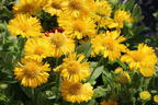 Die Großblumige Kokardenblume 'Mesa Yellow' ist eine Staude, an der niemand vorbeikommt, weil sie die Sonne bis in den Herbst direkt auf der Erde positioniert, durch fantastische Formen die Blicke auf sich zieht und mit geringem Pflegeaufwand für viele Jahre Freude bereitet. In einem Knall- bis Sonnengelb blüht sie ab Juni bis September/Oktober. Die Blütenblätter zeichnen mehrreihig eine Krug- bis Schalenform, die eine große, flauschig erscheinende, ockergelbe Mittelscheibe aus zahlreichen Staubfäden strahlenartig umkreisen. Sie ist bekannt als beliebte Bienenweide mit einem hohen Nektarwert, die jedes Jahr auch andere Insekten anlockt. Dadurch entsteht ein lebendiges Treiben und Wohlgenuss für die Augen. Der Blütenstand bildet sich an aufrechten, standfesten Stängeln mit einer Wuchshöhe bis 35 cm und einem darunter liegenden, wechselständigen Blattwerk. Die Blätter formen sich schlank-länglich bis lanzettlich und spitzen sich zu. Sie verfügen über eine grau-grüne Farbe, die wunderbar mit den Blüten harmoniert und diese perfekt in Szene setzt. Die Gaillardia x grandiflora 'Mesa Yellow' ist sommergrün und wirft ihr Laub im späteren Herbst ab, beziehungsweise lässt es absterben. Dies ist die Folge eines Prozesses, der aus dem Herunterfahren des Stoffwechsels zur Überwinterung resultiert. Im Frühjahr treibt die Staude mit frischen Blättern neu aus und bildet einen kompakten, rundständigen Blattschopf bei einer Wuchsbreite zwischen 20 cm und 30 cm. Weil sie horstbildend ist, ist eine unkontrollierte Ausweitung nicht zu befürchten und auf eine Wurzelsperre beim Pflanzen zu verzichten. Die vielfältige Verwendungsmöglichkeit zeigt einen weiteren Pluspunkt dieser Staude. Solange sie einen optimalen Standort und eine minimale Grundpflege erhält, gedeiht sie überall: im Beet, in Rabatten, als Solitärpflanze, in der Gruppe sowie in Kübeln auf Terrassen und Balkone. Als Schnittblume zählt die Großblumige Kokardenblume 'Mesa Yellow' als ein bedeutsames Exemplar für die Gestaltung wunderschöner Sommersträuße. Anstatt in der Vase ist sie zudem im Blumentopf ebenso für Tischdekorationen einsetzbar.
