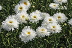Die Großblumige Margerite 'Ohh La LaSpider' läutet eine neue Ära unter den Margeriten ein, weil sie neben dem kompakten Wuchs, der arttypischen Blattform und ihrem geringen Anspruch nun eine voluminöse Blüte bietet, ohne ihre insektenfreundliche Eigenschaft zu verlieren. Sie verfügt über deutlich mehr Blütenblätter als die klassischen Sorten, die sich über mehrere Reihen verteilen. Dennoch sind sie einfach aufgebaut, wobei sich anfänglich eine halbgefüllte Form zeigt. Somit erlauben die Blüten nach der Entfaltung über die Schalen- bis zur Tellerform den freien Zugang zum wertvollen Nektarreservior in der Blütenmitte. Diese bildet in einem kräftigen Gelb einen beeindruckenden Kontrast zu den creme-weißen bis rein weißen Blütenblättern in sternenartiger Formgebung. Durch den hohen Nektargehalt verströmt sie eine Kombination aus angenehm frisch-blumigen und süßlichen Komponenten, die insbesondere Bienen, Hummeln und Schmetterlinge anlocken. Die Leucanthemum x superbum 'Ohh La LaSpider' offeriert die klassische Margeriten-Blätterform mit lanzettlichen, länglich-leicht ovalen Linien und einem fiederschnittigen, auffallend gezähntem, fiederschnittigem Rand. Die Oberfläche ist glatt. Durch das mittelstarke Blattgrün stechen die hellen Blüten besonders hervor. Es ist eine laubabwerfende, beziehungsweise sommergrüne Staude, deren oberirdischen Grünteile vollständig im Herbst eingehen, um bestmöglich für die kalte Saison gewappnet zu sein. Während die Blätter im unteren Bereich im folgenden Frühling an eigenen Stielen erneut austreiben, sitzen sie im oberen Bereich direkt an den Stängeln und reichen bis kurz unter die Blütenstände. Diese sind trugdoldenartig sortiert. Die entzückende Großblumige Margerite 'Ohh La LaSpider' entfaltet sich bis auf eine Höhe von 45 cm und eine Breite bis 40 cm. Das macht sie zu einer idealen Staude für die Kübelkultivierung. Hier wächst sie durch das beschränkte Platzangebot meist leicht rundlich-buschig; im Beet mit uneingeschränktem Platzangebot hingegen aufrecht und nur im unteren Bereich buschiger. Letzteres ist durch die Pflanzung in Beeten und Rabatten zu erzielen. Sehr beliebt ist die Gruppenpflanzung mit mehreren Exemplaren dieser Sorte, wodurch riesige Blütenmeere zu verwirklichen sind. Ihr sommerliches, liebliches Flair ist zudem als Schnittblume in den Wohnbereich zu bringen, wo sie durch eine lange Haltbarkeit bis zu acht oder zehn Tagen besticht.