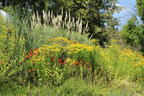 Helenium autumnale 'Helena Gold' eignet sich für lehmig-sandige und humose Böden. Die mehrjährige, winterharte Staude lässt sich an geeigneten Standorten ohne große Mühen pflanzen und pflegen. Der Hobbygärtner setzt die frischen Stauden in einem Plfanzabstand von 45 Zentimetern in die Erde. Wer im Herbst vor dem ersten Frost pflanzt, verschafft der Staude einen Vorteil. Sie entwickelt vor dem Winter ihre Wurzeln und treibt im Frühjahr kräftiger aus. Die Blüte im ersten Jahr fällt nach dem Einpflanzen im Herbst reicher aus, als nach dem Einsetzen im Frühjahr. Im ersten Jahr benötigt die Herbst-Sonnenbraut 'Helena Gold' regelmäßige Wassergaben. Verblühtes ist knapp über der nächsten Knospe abzuknipsen, das erhält und fördert eine reichere und länger anhaltende Blütenpracht. Nachdem die Gewöhnliche Sonnenbraut im Frühjahr ihre Triebe bildet, bricht der Gärtner die oberen Triebspitzen heraus. So bekommt die Staude ein kompakteres, buschigeres Aussehen und dichtere Blütenstände. Am besten wirkt Helenium autumnale 'Helena Gold' in Rabatten und Wildstaudenbeeten sowie Bauern- oder Präriegärten. Gut kombinieren lässt er sich mit anderen Prachtstauden oder Gräsern. Und noch einen positiven Nebeneffekt hat die Herbst-Sonnenbraut 'Helena Gold'. Insekten lieben sie. Schmetterlinge besuchen die goldgelben Blüten. Auch Bienen und Hummeln erfreuen sich an der reichen Nahrungsquelle. Der Fruchtstand der Helenium autumnale ist voller Samenkörner, die im Herbst den Vögeln schmecken. Wer diese Staude in seinen Garten pflanzt, leistet einen wichtigen Beitrag zu einer nachhaltigen, umweltfreundlichen Gartenkultur.