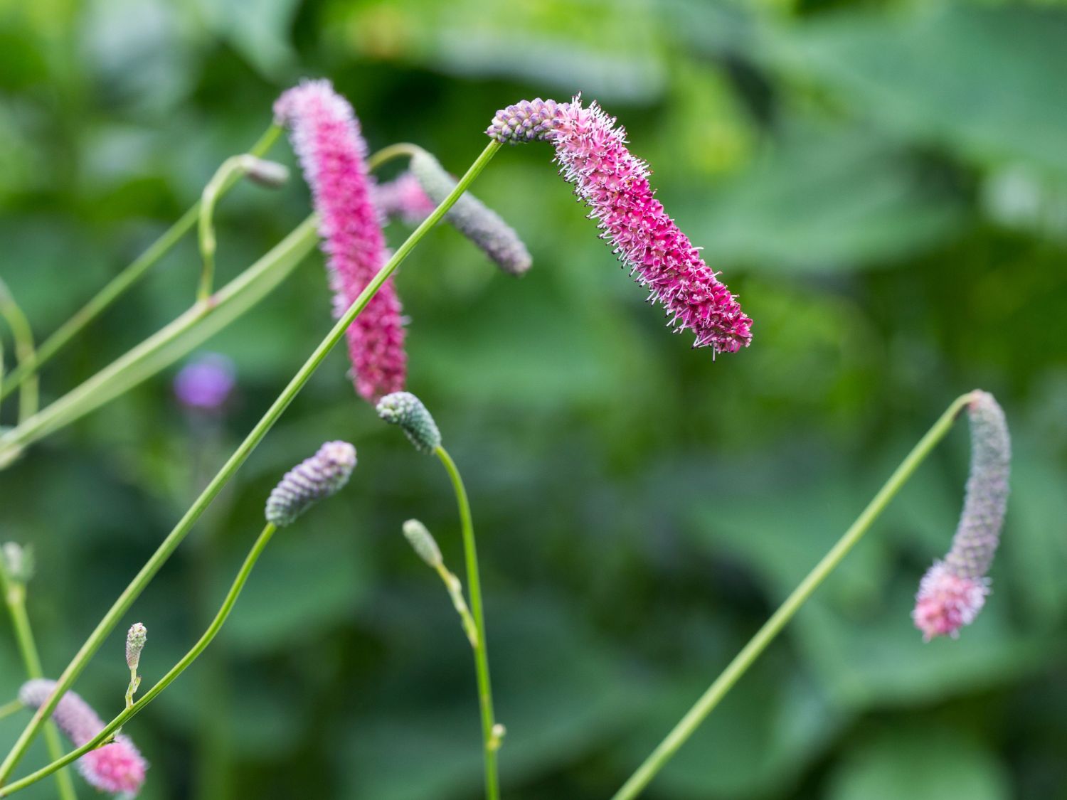 Der Hohe Wiesenknopf 'Scapino' entfaltet eine ausdrucksstarke Mischung aus schwebender Leichtigkeit, ausdauernder Präsenz und einer sommerlichen Blütenabfolge, die Gartenbilder mit lebendiger Bewegung und feiner Eleganz durchzieht. Bereits in den ersten Wochen der Vegetationsperiode entwickelt diese Staude einen klar gegliederten, aufrechten Aufbau, der sich locker-buschig verzweigt und dennoch eine bemerkenswerte innere Spannung wahrt. Aus einem grundständigen Blattschopf erhebt sich ein ausdauernder Wuchs, der je nach Standort zwischen 100 cm bis 150 cm misst und dabei eine Spannweite von 40 cm bis 50 cm erreicht. Die Silhouette wirkt dabei schlank, stilvoll und bewusst offen, was dem Bestand Luftigkeit verleiht und benachbarten Pflanzen Raum zur Entfaltung lässt. Das Laub kommt mit elliptischen, gefiederten Einzelblättern, gesägtem Rand, matt schimmernder Oberfläche und frischem, mittelgrünem Farbton daher. Die derbe Blattstruktur bildet einen stilvollen Kontrast zu den filigranen Blütenständen. Ab Juni steigen die ersten dunkelroten Ähren über das Blattwerk hinaus und setzen einen anmutigen Ausdruck in Gang, der sich ohne Unterbrechung bis in den September fortsetzt. Jede einzelne Blüte ist klein; doch in der Summe entsteht ein pompöses Farborchester, das sich mit zunehmender Reife verdichtet. Die ährenförmigen Blütenstände neigen sich elegant überhängend und reagieren mit einer lebendigen Dynamik auf Windbewegungen. Dank der ausgezeichneten Standfestigkeit behalten die Blütenstängel auch bei Regen ihre Form, wodurch zusätzliche Stützmaßnahmen entfallen. Der zarte Duft unterstreicht den natürlichen Charakter dieser Sorte. Während der langen Blühphase dient ein Hoher Wiesenknopf 'Scapino' als reich frequentierte Insektenweide und zieht zahlreiche Bestäuber an, die das feingliedrige Blütenangebot kontinuierlich aufsuchen. Diese Staudensorte bietet vielfältige gestalterische Möglichkeiten, von lockeren Gruppen in Staudenbeeten über rhythmisierende Pflanzungen entlang von Teichrändern oder inmitten von Feuchtwiesen bis hin zu großzügigen Rabatten mit naturnahem Charakter und strukturierten Stauden- oder Ziergrasbeeten. Auch als Schnittblume bereichert (bot.) Sanguisorba tenuifolia 'Scapino' florale Arrangements, da die stabilen Stängel und die dunkle Blütenfarbe eine elegante Note versprühen, die sowohl frisch als auch getrocknet einen mediterranen Reiz entfalten.