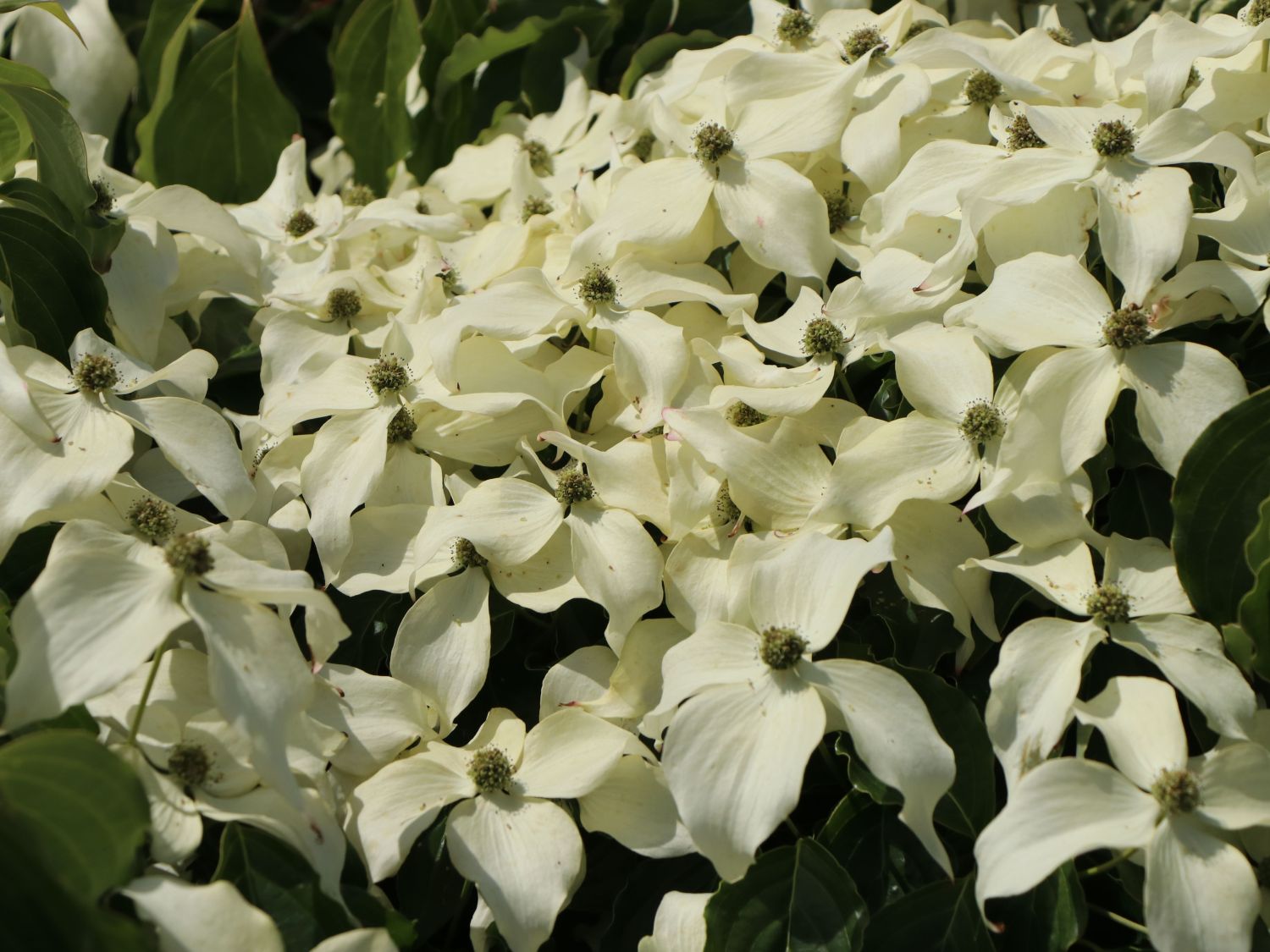 Sein Name ist Programm - All Summer - das gilt für die traumhaften Blüten. Diese bleiben über mehrere Monate an den Zweigen. Erste Blüten des Japanischen Blumen-Hartriegel 'All Summer' zeigen sich im Mai. Die auffälligen weißen Hochblätter stehen um ein Knäuel kleiner grüner Blüten. Sie verbleiben bis Ende August am Baum. Ständig entwickeln sich neue Blüten, während sich aus den abgeblühten die herrlichen Früchte entwickeln.