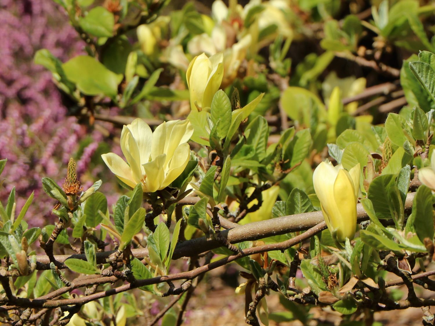 Die Magnolie 'Butterflies' begeistert jeden Gartenfreund mit ihren großen Blüten in schönstem Gelb. Sie sind ein Hingucker im Frühlingsgarten! Der sommergrüne Zierstrauch präsentiert sich von April bis in den Mai mit einer fantastischen Blütenpracht. Die tulpenförmigen Blüten von (bot.) Magnolia 'Butterflies' sehen hinreißend aus und verströmen einen wundervollen Duft. 'Butterflies' ist eine neuere Sorte aus New York. Sie entstand durch das Kreuzen der nordamerikanischen Magnolia acuminata mit der chinesischen Magnolia denudata. Die Magnolie 'Butterflies' ist ein mehrstämmiger Großstrauch der Extraklasse. Er erreicht eine Höhe von vier bis sechs Metern. Die Wuchsbreite liegt bei drei bis vier Metern. Sobald der Frühling den Garten wachküsst, ist dieser Strauch ein sehenswertes Ereignis! Die schöne Pflanze entwickelt zauberhafte Blüten. Die Geschöpfe sind tief gelb und mittelgroß und erscheinen vor dem Blattaustrieb. Sie stehen endständig an den Trieben und ziehen alle Blicke auf sich. Die Blütenblätter wachsen schraubenartig an der Blütenachse. Öffnen sich die Knospen, präsentieren die herrlichen Blüten ihre Staub- und Fruchtblätter. Diese locken mit ihrem Duft Bienen, Hummeln und andere Insekten magisch an.