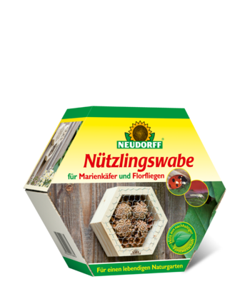 Die Waben werden einfach im Garten, auf der Terrasse oder auf dem Balkon an regengeschützter und sonniger Stelle aufgehängt. Marienkäfer und Florfliegen regulieren die Bestände von Schadinsekten wie Blattläusen, Thripsen und Wollläusen an Pflanzen im Garten, auf der Terrasse oder auf dem Balkon. So helfen beide Nützlingsarten beim biologischen Schutz der Pflanzen.