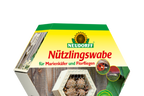 Jede einzelne Nützlingswabe ist ein mit der Hand gefertigtes Unikat. NEUDORFF ® bietet drei unterschiedlich bestückte Waben in sechseckiger Form an. Diese Waben lassen sich einzeln aufhängen oder auch mittels einer einfachen metallenen Steckverbindung ganz nach Wunsch zusammen stecken. Das in der Wabe verarbeitete Holz ist aus nachhaltiger Forstwirtschaft. Die Maße betragen 17,5 x 20 x 8 cm.