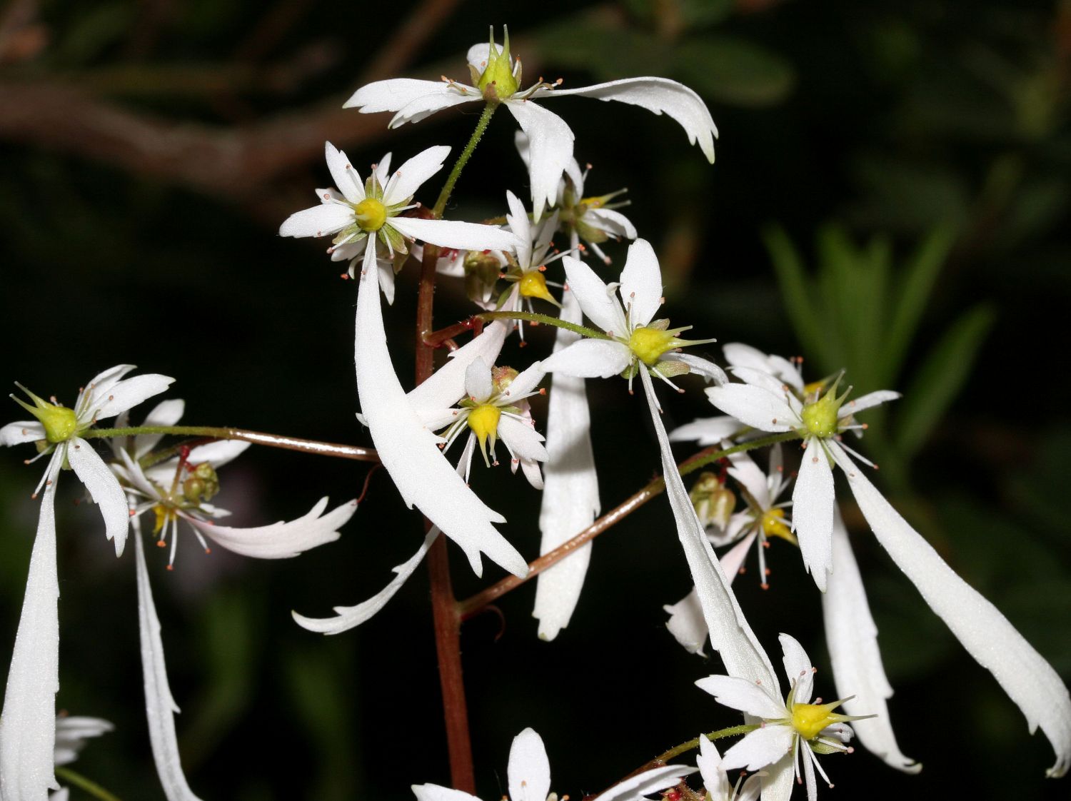 Durch den Winter kommt Saxifraga cortusifolia var. Fortunei mit der leichten Hilfe des Gärtners. ie winterharte Pflanze benötigt durch die späte Blüte einen leichten Schutz, da frühe Fröste der Pflanze schaden. An einem geschützten Standort kommt der Oktober-Steinbrech besser zurecht. Drohen Fröste, deckt der Gärtner die Pflanze mit Vlies ab. Auch bei Gewächsen mit jungen Trieben empfiehlt sich dieses Vorgehen. Alternativ empfiehlt sich Tannenreisig oder Laub. Im Frühjahr entfernt der Pflanzenfreund den Schutz, sobald kein Frost mehr droht. Mit kräftigem Wachstum und einer späten, traumhaft schönen Blüte bedankt sich das aparte Gewächs für diese Mühen.