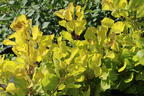Diesem Leuchten schaut man bereits aus der Ferne zu. Nicht zu übersehen ist der prächtige Perückenstrauch 'Golden Lady' ®. Dieses Laubgehölze überzeugt mit einem strahlend auffälligen Laubwerk. Im Frühjahr zeigt sich ein orangefarbiger Austrieb, der im Verlauf in ein Goldgelb bis Gelbgrün wechselt. Sogar die Triebe sind beim Austreiben gelblich gefärbt. Doch damit nicht genug. Im Sommer erscheint das Laub dieses Strauchs in einer hellgrün-gelben Pracht. Im Herbst changieren die Blätter mit rötlichen-orangen Farbverläufen - ein Hingucker im Garten! Ideal steht Cotinus coggygria 'Golden Lady' ®, so der botanische Name, an einem sonnigen bis halbschattigen Platz und bevorzugt normale bis kalkhaltige Böden. Winterhärte und Pflegeleichtigkeit hat der vielseitige Perückenstrauch 'Golden Lady' ® zusätzlich mit im Gepäck. Eine Pflanze, die überzeugen will! Prächtige und beeindruckende Farbverläufe sind die Charakterstärke dieses großartigen Strauchs. Unter den goldenen Sträuchern ist der Perückenstrauch 'Golden Lady' ® eine äußerst extravagante Züchtung. Das Laub ist abgerundet bis oval zu beschreiben. Nach dem leuchtenden Farbenfest im Herbst wirft der Strauch sein Laub zum Winter hin ab. Der Perückenstrauch wächst kugelig und abgerundet. Ideal wirkt er in Einzelstellung, kann jedoch zudem großartig in gemischten Hecken seinen Platz finden oder im Beet, arrangiert mit anderen Sträuchern.