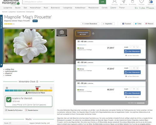 Der Winterhärte-Check der Baumschule Horstmann ist ein praktisches Tool, das schnell Klarheit schafft. Interessierten wird auf den jeweiligen Produktseiten unter www.baumschule-horstmann.de nach Eingabe der Postleitzahl angezeigt, ob eine gewünschte Pflanze zur Winterhärtezone des Wohnorts passt. Dadurch lässt sich besser entscheiden, ob die Wunschpflanzen auch unkompliziert im eigenen Garten oder auf dem Balkon überwintern können.