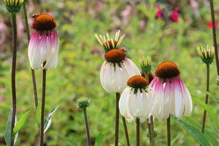 Als Bienenweide bezeichnen Gärtner:innen die blühenden Gewächse, die von den Bienen besonders gut besucht werden, weil sie überdurchschnittlich reiche Nahrungsquellen darstellen. In Deutschland gehören die meisten Wildpflanzen mit ihren einfachen, ungefüllten Blüten dazu. Viele durch Züchter:innenhand entstandene Exemplare sind in ihrer Form verändert. Ungefüllt blühende Wildformen entwickelten sich durch züchterische Kreuzungen und Veredelungen. Sie wurden halbgefüllte oder ganz gefüllte blühende Glanzpunkte, die optisch begeistern. Sehr schön für das menschliche Auge, doch leider absolut wertlos für die hungrigen Tiere. In den toll aussehenden, jedoch für viele kleine Tierchen nutzlosen, blühenden Pflanzenteilen findet sich keine Nahrung.