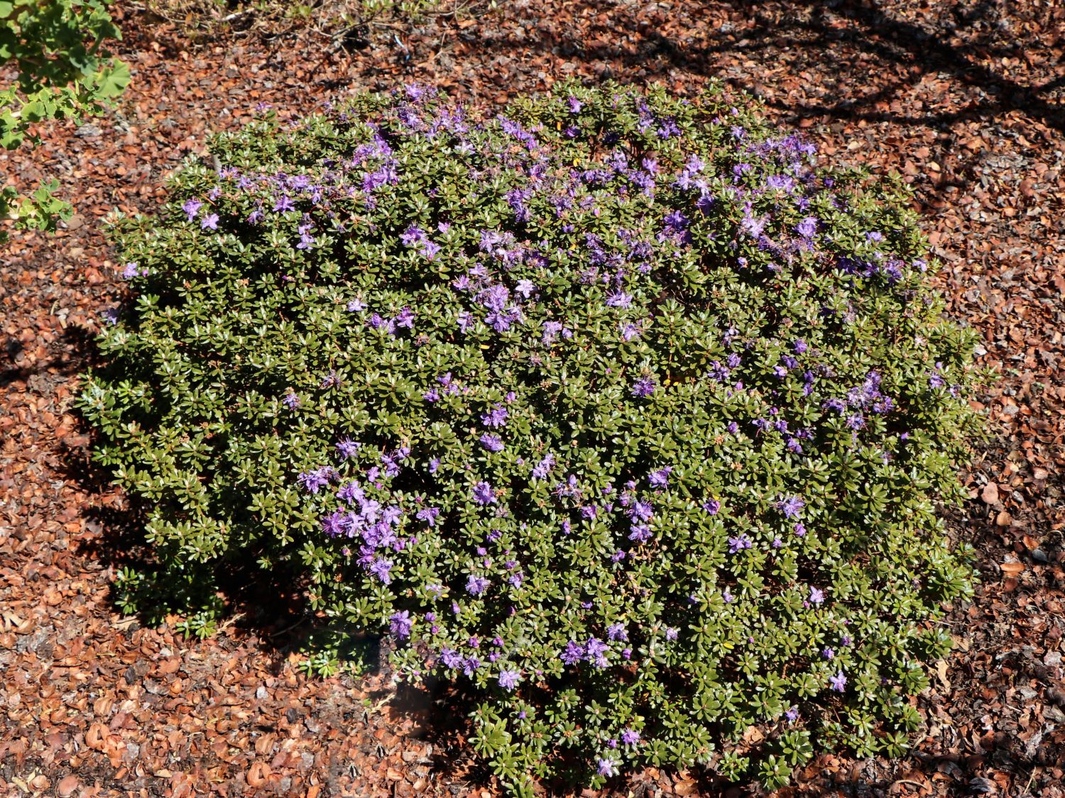 Der Rhododendron 'Intrifast' zählt zur Familie der Heidekrautgewächse. Er ist ein niedriger Zierstrauch mit lanzettlichem Laub und leuchtender Blütenpracht in schönstem Violettblau. Die weit geöffneten, trichterförmigen Blüten sind sechslappig und in ballförmigen Dolden mit beeindruckender Blütenfülle angeordnet. Sanfte Wellen umschmeicheln die Säume der Blüten, die Blütezeit dauert von April bis Mai. Das immergrüne Laub von (bot.) Rhododendron fastigiatum 'Intrifast' besticht durch einen silbrig grünen Austrieb und ein bläuliches Grün im Winter. Damit sorgt der Rhododendron 'Intrifast' das ganze Jahr über für eine abwechslungsreiche Farbenpracht im Garten.