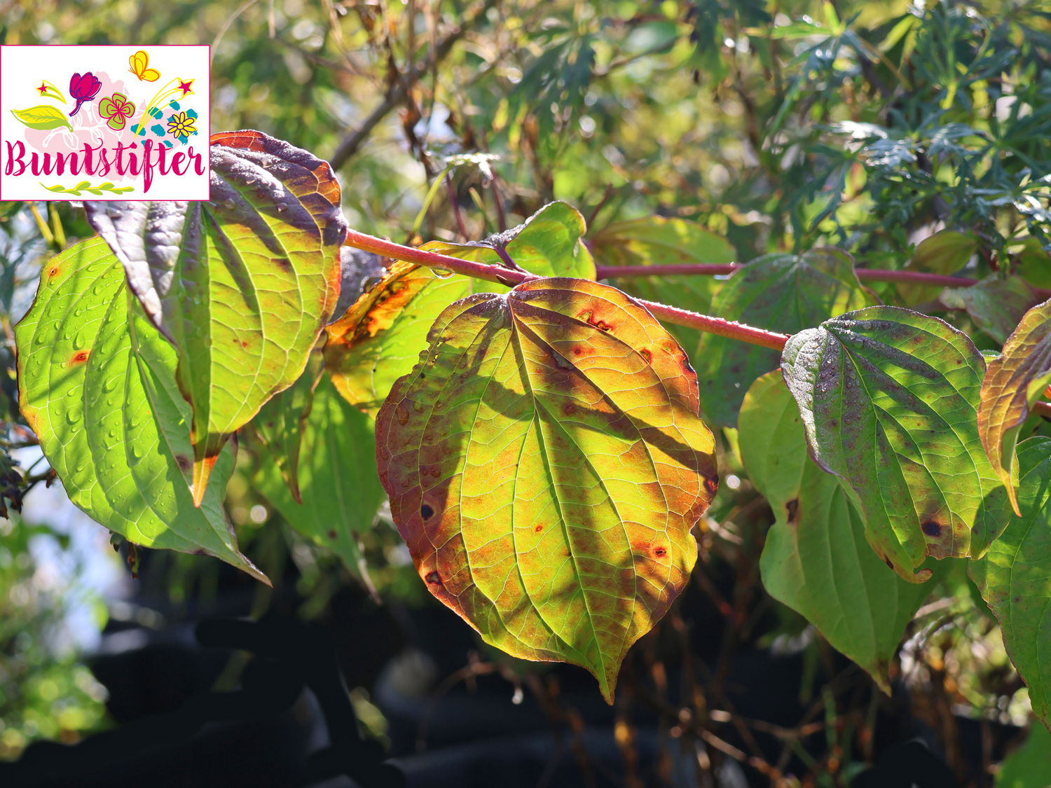 Der Rote Hartriegel Buntstifter 'Anny's Winter Orange' ist eine ganz besonders schöne Sorte unter den bekannten Hartriegeln. Der sommergrüne Strauch bereitet durch seinen breiten und aufrechten Wuchs sowie durch seine absolut dekorativen, runden schwarz-violetten Früchte einen traumhaften Anblick im Garten. Die eiförmigen Blätter von (bot.) Cornus sanguinea Buntstifter 'Anny's Winter Orange' zeigen sich in einem warmen Dunkelgrün und entwickeln sich im Herbst zu einem leuchtenden Orange und Bordeauxrot. Im Frühling schmückt sich der Rote Hartriegel Buntstifter 'Anny's Winter Orange' mit seinen cremeweißen Blüten und verschönert mit diesem Schmuck die Landschaft. Die ab Mai erscheinenden Blüten ordnen sich in Schirmtrauben oder Dolden an und erreichen eine Größe von bis zu acht Zentimetern. Am wohlsten fühlt sich der Rote Hartriegel Buntstifter 'Anny's Winter Orange' an einem sonnig bis halbschattig gelegenen Standort. Der ideale Boden ist nährstoffreich, kalkhaltig, frisch bis feucht und gut durchlässig. Im Winter ist für den in Europa beheimateten Großstrauch kein besonderer Schutz notwendig, das schöne Ziergehölz ist gut winterhart.