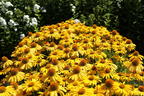 Der Scheinsonnenhut Papallo ® Classic 'Deep Yellow' erstrahlt durch seine sagenhafte Farbbrillanz in einem lebendigen Sommerton und zeichnet sich durch eine hohe Robustheit und leichtem Pflegeaufwand aus. Er zählt zu den Korbblütlern und besitzt deshalb schalen- bis körbchenförmige Blüten, die sich ab Juli in einem spektakulären Sonnengelb öffnen. Die Blütenblätter sind lanzettlich und spitz zulaufend, einreihig angelegt und wirken wie Sterne. An eine Sonnenblume erinnernd, zeichnet sich in der Mitte ein attraktiv gefärbtes Stempelkissen, aus dem unzählige Staubfäden emporsteigen. Sie sind dunkelbraun bis schwarz und durch sie hindurch schimmert die Zentrumbasis in einem intensiven Gelb. Hier fühlen sich viele Insekten wohl, die dort bis zum Blühende im September reichlich Nektar und Pollen vorfinden. Damit nimmt (bot.) Echinacea purpurea Papallo ® Classic 'Deep Yellow' eine bedeutende Stellung in der Ökologie ein, die auf den Artenschutz von Insekten abzielt. Allein aus diesem Grund ist diese Staude ein Must-have in jedem Garten. Zu den anmutigen Sommerblüten gesellt sich ein schickes Laub, das sich aus breit-lanzettlichen bis eiförmigen Einzelblättern zusammensetzt. In ihrer dunkelgrünen Farbe begleiten sie die traumhafte Blütenfülle auf elegante Weise. Es handelt sich um sommergrünes Laub, das im Spätherbst zurückfriert und sich im Frühjahr frisch neu bildet. Dieser Prozess ist lebensnotwendig für diese Staude, damit sie in die Winterruhe übergehen kann und als mehrjährige und winterharte Pflanze ohne Erfrierungserscheinungen mit gewohnter Wuchs- und Blütenkraft im Folgejahr wieder die Gemüter erfreut. Im Gesamten zeigt sich ein horstbildender, aufrechter und locker-buschiger Wuchs. Die Wuchshöhe bis 80 cm und Wuchsbreite bis 40 cm sorgen für Kompaktheit. Dank ihrer hervorragenden Anpassungsfähigkeit fühlt sich der Scheinsonnenhut Papallo ® Classic 'Deep Yellow' sowohl im Garten als auch im Kübel wohl - vorausgesetzt, Standort, Boden und ein Mindestmaß an Pflege erfüllen seine wenigen Anforderungen.