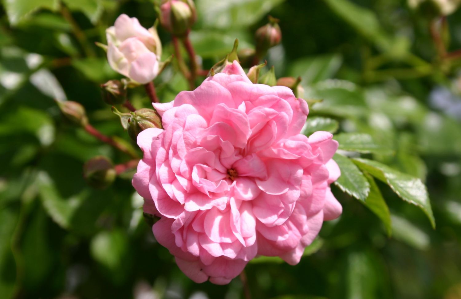- Blüten stark gefüllt in Rosa, öfter blühend