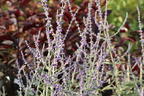 Die Silber-Perowskie 'Silvery Blue' ist ein filigraner Halbstrauch, der Gartenfreunde mit anmutigen Blütenrispen und dekorativem Laub erfreut. Sie zeichnet sich durch eine lange Blütezeit aus und stellt geringe Ansprüche an Standort und Pflege. Im Juli entfalten sich ihre Blütenknospen und schmücken die feinen Triebe bis September. Die kleinen Blüten sitzen in langen Rispen. Sie leuchten in einem intensiven Blauviolett. Mit ihrem zarten, angenehmen Duft verwöhnen sie die Sinne. Bienen, Hummeln und Schwebfliegen fliegen die Blüten in großer Zahl an. Neben dem hinreißenden Flor begeistert Perovskia atriplicifolia 'Silvery Blue' mit ihrem wunderschönen Laub. Ihre Blätter sind lanzettlich, gefiedert und besitzen einen grob gesägten Rand. Sie sind graugrün gefärbt und mit einem silbrigen Filz überhaucht, so dass sie in einem edlen Silbergrau schimmern. Auch die Stängel zeigen ein metallisch glänzendes Silbergrau. Die Silber-Perowskie 'Silvery Blue' wächst locker aufrecht, feintriebig und ausladend. Sie erreicht eine Höhe von 100 bis 150 Zentimetern und eine Breite von maximal 100 Zentimetern.