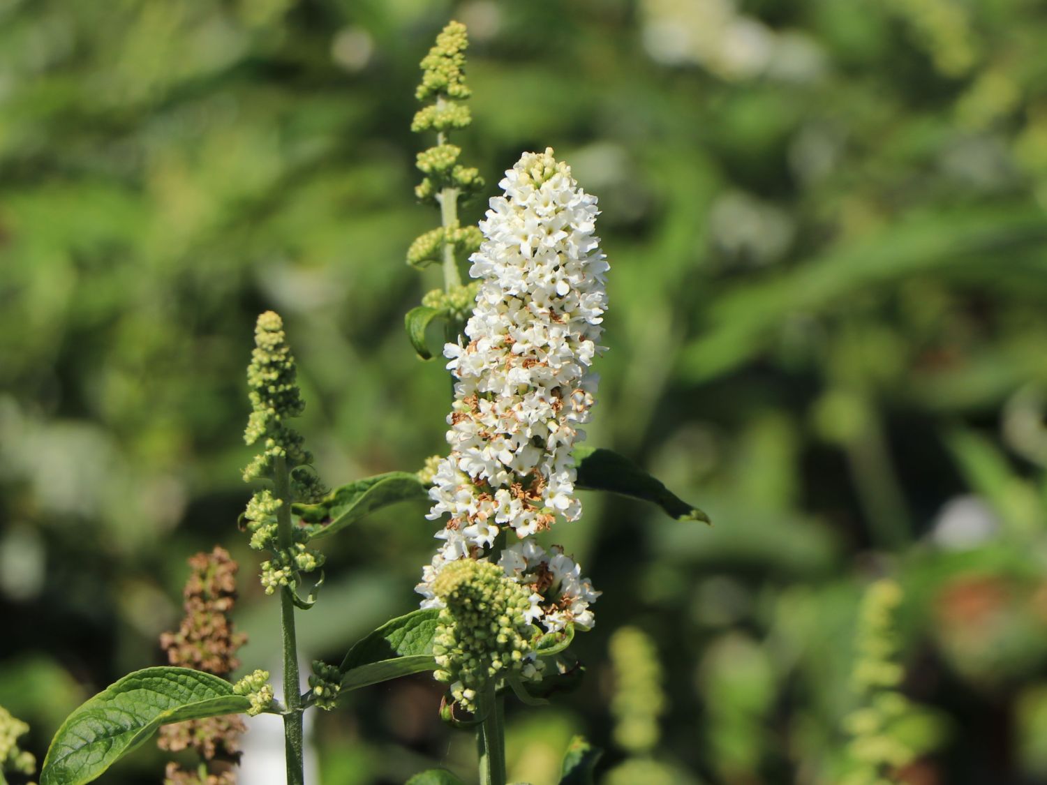 Der Sommerflieder / Schmetterlingsstrauch PROVEN WINNERS ® 'Miss Pearl' blüht im Sommer unermüdlich. Zahlreiche Blütenrispen bedecken den kompakten Strauch und heben sich in schönstem Reinweiß von den graugrünen Blättern ab. Die Blüten von (bot.) Buddleja davidii PROVEN WINNERS ® 'Miss Pearl' sind auch für Schmetterlinge, Bienen und Hummeln attraktiv. So bietet dieser Schmetterlingsflieder während seiner Blütezeit ein echtes Farbspiel, wenn die bunten Falter auf den weißen Rispen landen. Diese Sorte aus der PROVEN WINNERS ® Kollektion wächst kompakt und bleibt mit einer Wuchshöhe von 120 bis 150 cm überschaubar. Dadurch eignet sich die Pflanze perfekt für den kleinen Garten und größere Kübel. Hierin gepflanzt bringt er sommerliches Flair auf die Terrasse. Auch in einer Gehölzgruppe spielt der Sommerflieder / Schmetterlingsstrauch PROVEN WINNERS ® 'Miss Pearl' seine Reize aus. Der reichblühende Zierstrauch vermittelt zwischen hohen Hecken und niedrigeren Pflanzen und ist in Rabatten ein strahlender Mittelpunkt.