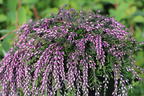 Die Sommerheide / Besenheide Knospenzwerge Gardengirls ® 'Finula' ist durch ihre überhängenden Triebe einzigartig. Durch ihren Wuchs unterscheidet sich diese Sorte klar von ihren Artgenossen. Sie ist eine spektakuläre Zuchtform für alle Liebhaber von Heidepflanzen. Dicht an dicht sitzen die Knospen der (bot.) Calluna vulgaris Knospenzwerge Gardengirls ® 'Finula' an den filigran hängenden Zweigen. Sie bedecken den niedlichen Strauch nahezu komplett und lassen ihn in spektakulärem Lila erstrahlen. Vielen ist diese Pflanze als Heidekraut oder Knospenheide bekannt. Letzteren Namen trägt sie, da sich ihre Blütenknospen nicht öffnen. Sie behalten ihre leicht kegelförmige Gestalt und büßen nichts von ihrer intensiven Farbe ein. Den gesamten Spätsommer und Herbst zieren die niedlichen Geschöpfe die Calluna vulgaris Knospenzwerge Gardengirls ® 'Finula' in ihrem herrlichen Lilaton. Die Blütezeit liegt zwischen September und November. Auch nach dem Flor ist die Pflanze ein attraktives Zierelement. Denn den Zwergstrauch bedecken immergrüne Blätter. Diese zeigen sich winzig und wachsen nicht über wenige Millimeter hinaus. Sie liegen schuppenartig an den Trieben der Sommerheide / Besenheide Knospenzwerge Gardengirls ® 'Finula' an. Die Blättchen sind ledrig und schützen sich derart vor starkem Wasserverlust. Das macht die Pflanze robust und ermöglicht ihr ein Überleben während längerer Trockenperioden. Für den Gartenfreund sind sie vor allen Dingen ein guter Grund, diesen Zwergstrauch als ganzjährig attraktive Zierde zu wählen.