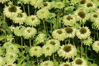 Der Sonnenhut SunSeekers 'Apple Green' entfaltet seine ganz besonderen, apfelgrünen Blüten in den warmen Sommermonaten. Die horstig wachsende, kompakte Staude ist sommergrün und erweitert die Farbpalette der Sonnenhüte um das ungewöhnliche, leuchtende Grün ihrer Blüten. Die mehrjährige Staude (bot.) Echinacea SunSeekers 'Apple Green' wächst auf eine Höhe von rund 60 Zentimeter heran und bildet bereits im ersten Jahr eine Vielzahl von Blüten aus. Die körbchenförmigen Blüten sind in der Mitte leicht aufgeworfen. Die kurzen Blütenblätter sind sehr zahlreich und sorgen für eine schöne, füllige Blüte die sich auch perfekt als Schnittblume für die Vase eignet. Der Sonnenhut SunSeekers 'Apple Green' zieht Bienen, Schmetterlinge und andere Insekten an und bietet den nützlichen Tieren reichhaltige Nahrung.
