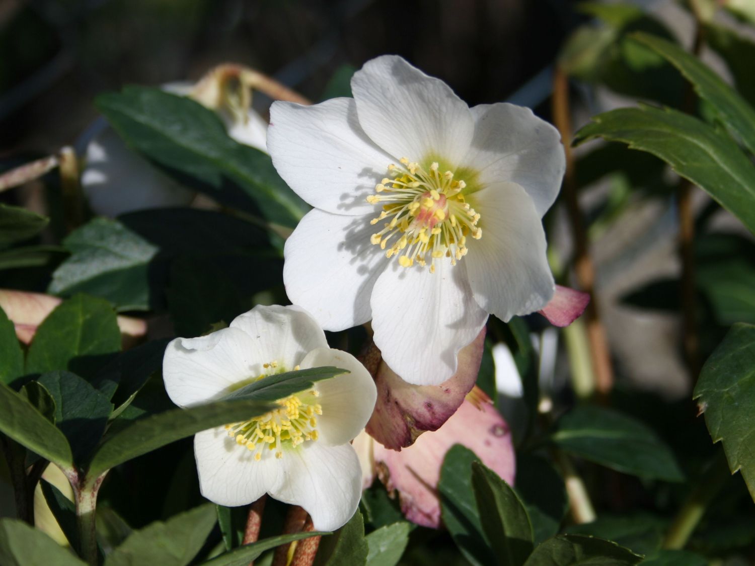 Auch verholzende Pflanzen zeigen eine Winterblüte. Zaubernuss, Mahonie oder Winterjasmin sind einige Beispiele. Einige Sorten dieser winterblühenden Ziersträucher blühen bereits im Januar. Zu ihnen gesellen sich die Winterblüher-Stauden gerne. Ohnehin lieben sie einen geschützten Standort unter Gehölzen oder den Schutz von Hauswänden vor frostigen Winden. Eine tolle Kombination sind winterblühende Stauden vor immergrünen Sträuchern und Bäumen. Deren grünes Laub bietet den perfekten Hintergrund für die schönen Blüten der Stauden.