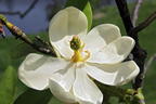 Die Sumpf-Magnolie ist eine echte Schönheit, die mit ihren großen, cremeweißen Blüten besticht. Sie erreichen zwischen 5 und 7 cm im Durchmesser und sind weithin durch den Garten gut sichtbar. Die schalenförmigen Blüten sind nicht nur ein echter Hingucker im Garten, sondern bieten mit ihrem intensiven Duft nach Zitrone auch ein Erlebnis für die Nase. Insgesamt macht diese Magnolie einen sehr weichen Eindruck. Die Blüten sind zart und dezent in ihrer Farbe. Das Laub ist eiförmig oval und kommt mit sanften Spitzen. Davon abgesehen verzaubert das Blattwerk mit den silbrigen Unterseiten der Blätter. Diese passen perfekt zum gräulich braunen Stamm der Magnolie, was ihr ein edles Aussehen verleiht. Scharfe Ecken und Kanten sucht man an dieser grazilen Magnolie vergeblich. Auf diese Weise bringt sie Ruhe und eine stille Exotik in den Garten. Die botanische Art Magnolia virginiana stammt ursprünglich aus Nordamerika. Von dort fand sie als eine der ersten Magnolien-Arten ihren Weg nach Europa. Die Sumpf-Magnolie wird im Laufe der Jahre ca. 4,5 m hoch und bis zu 3,5 m breit. Sie ist eine beeindruckendes Ziergehölz, das vor allem in der Einzelstellung brilliert. Dank ihrer Blüten eignet sich das Gewächs obendrein als Highlight im Duftgarten.
