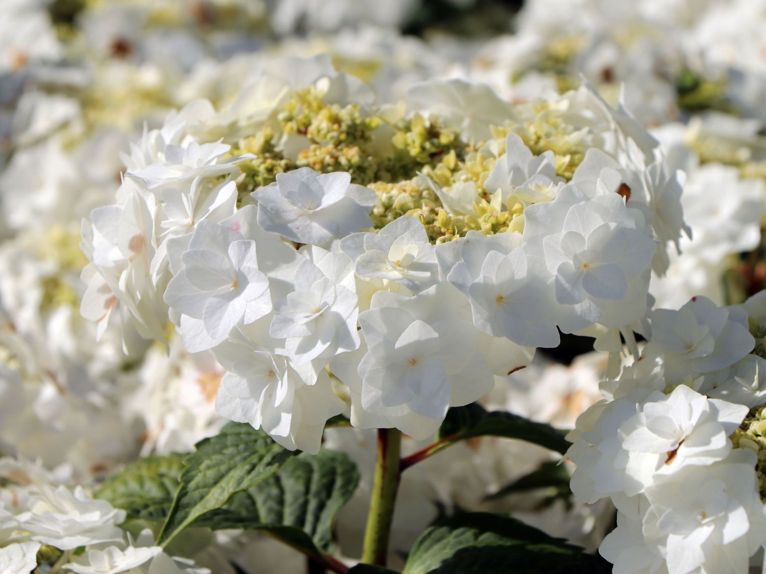 Je schattiger ein Standort während des Tages bleibt, desto reicher bedankt sich die Tellerhortensie Royalty ® Collection 'Wedding Gown ®' mit Blütenköpfen. An einem halbschattigen Platz ist ihr die Morgensonne lieber als die heißen, fordernden Strahlen des Nachmittags. Zu viel Wind und peitschender Regen bringen die üppigen Blütenbälle schnell zur Welke. Die Hydrangea macrophylla Royalty ® Collection 'Wedding Gown ®' benötigt ein waldbodenähnliches, humusreiches Substrat. Der botanische Name „Hydrangea“ bedeutet „Wasserschlürfer“. Reichliche Wassergaben sind für diese Pflanze unverzichtbar. Trocknet der Boden zu sehr ab, hängend die Blätter schlaff herab. Der umsichtige Gärtner weiß, der schöne Strauch benötigt dringend Wasser. Im Winter erweisen sich die trockenen Blütenstände als dekorativer Blickfang. Sie lassen sich im Frühjahr bequem entfernen und machen Platz für frisches Grün und die prächtigen Blütenbälle der neuen Saison.
