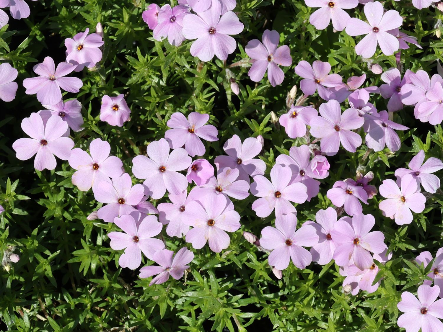 Die Teppich-Flammenblume 'Lachsjuwel' ist ein bezaubernder Bodendecker, der mit zartrosa bis magentafarbenen Blüten besticht. Die Blüten stehen in Dolden zusammen und sind flach radförmig. So kommt die Farbe der Blütenblätter auf bezaubernde Art zur Geltung. Beeindruckend ist dabei vor allem die große Zahl an Blüten, die diese Staude ausbildet. Die Bezeichnung „Blütenmeer“ ist bei diesem Bodendecker absolut zutreffend. Begleitet werden die Blüten vom dichten Laub, das sich teppichartig über die Beete ausbreitet. Das Laub erscheint in einem vitalen Grün und unterstreicht die grazile Anmut der Blüten. Die Blätter sind lanzettlich und schmal. Die Pflanze mit dem botanischen Namen Phlox douglasii 'Lachsjuwel' gehört zu den niedrigen Stauden und wird im Schnitt 10 cm hoch. Im ausgewachsenen Zustand sind Höhen von bis zu 25 cm möglich. Sie ist ideal geeignet, um große Flächen im Garten mit romantischen Blüten zu begrünen, ohne die Sicht auf andere Stauden oder den restlichen Garten zu versperren. Dabei macht sie im Staudenbeet, im Steingarten oder auch in einem großen Kübel eine gute Figur. Am liebsten steht die Teppich-Flammenblume 'Lachsjuwel' in kleinen Gruppen. Das sind idealerweise Tuffs von 5 bis 10 Pflanzen. Der optimale Pflanzabstand beträgt ca. 20 bis 30 cm.
