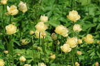 Die Trollblume 'Cheddar' setzt wunderschöne mondgelbe Lichtpunkte vor dunkellaubige Gehölze. Nicht nur ihre Farbe auch die stilvolle halbkugelige Form ihrer Blüten macht sie zu einer unverzichtbaren Blütenstaude im Garten. In doppelter Reihe umschließen die Kelchblätter eine zartgelbe Mitte. Die Kugelblüten erreichen einen Durchmesser von rund 4 cm. Der Reiz dieser Staude geht von den Kugelblüten aus, die auf langen Stängeln den Laubbereich weit überragen. Jedes Grundblatt von (bot.) Trollius x cultorum 'Cheddar' ist tief handförmig geteilt. An den langen Stielen wachsen in den Knotenpunkten zusätzlich filigrane Stängelblätter. Mit einer Höhe von insgesamt 60 cm gehört die Trollblume 'Cheddar' zu den mittelgroßen Stauden. Ihre Blütezeit von Mai bis Juli ist länger als die anderer Sorten. Für optimales Wachstum benötigt sie einen humosen Untergrund und ein feuchtes Umfeld. Am Rand eines Gartenteiches, in der Nähe eines Bachlaufes oder in einem feuchten Beet lassen sich natürliche Situationen herstellen. Diese elegante Staude wirkt am besten, wenn sich ihre Blütenköpfe über dem Grün der Pflanzpartner erheben. An einem sonnigen Gehölzrand entstehen mit kleinen Gruppen von drei bis sieben Pflanzen schmückend Gartenszenen.