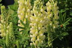 Die Vielblättrige Lupine 'Nanus Gallery Yellow Shades' beweist sich unter optimalen Bedingungen als eine flexibel verwendbare Kleinstaude mit eindrucksstarken Blüten und großen Blütenständen im Frühjahr sowie einem interessanten Laub und einer guten Winterhärte. Sie wächst in der Zwergausführung bis auf 40 cm hinauf und bis zu 30 cm breit. Ihr kompaktes, buschiges und leicht ausladendes Gesamtbild ergänzen von Mai bis Juni traumhaft schöne Blüten in einem Pastell- bis Zitronengelb. Sie sammeln sich rispenartig als großflächige Blütenstände, die aufrecht wie kleine Maiskolben wirken und unzählige kleine Blüten tragen, welche nach dem Öffnen eine Krug- oder Glockenform annehmen. Ihre Attraktivität unterstreicht der lieblich-zarte Duft aus einer Komposition mit dezenter Süße und blumiger Frische. Die Blütenblätter ergeben ein einfaches Konstrukt, das verschiedenen Insekten den Weg zum reichhaltigen Nektar freihält. Hier tummeln sich insbesondere Bienen und Schmetterlinge für die Nahrungsaufnahme. Die mittelgrünen Blätter komplettieren die visuelle Perfektion der Lupinus polyphyllus 'Nanus Gallery Yellow Shades'. Ihre einzigartig geformten Blätter zeichnen sich durch ihre sternenartige Ausbildung aus, die sich mit lanzettlichen Einzelblättern als gefingerte Blattspreiten in Tellerform darstellen. Sie verleihen der Staude einen zusätzlichen dekorativen Wert, der sie von den meisten anderen Pflanzen deutlich abhebt. Im Blumen- und Staudenbeet setzt diese Sorte mit der sanften Blütenfarbe und den ungewöhnlichen Blättern einen stilvollen Eyecatcher mit einer enorm sommerlichen Ausstrahlung sowie eindrucksvoller Wirkung auf die Sinne. Nicht weniger charmant und auffallend lässt sich die Vielblättrige Lupine 'Nanus Gallery Yellow Shades' in Kübel pflanzen, wo sie auf Terrassen und Balkone für ein atemberaubendes Sommerambiente sorgt. Wer sie in der Gruppe pflanzt, kann sie beispielsweise als Randbepflanzung, Abgrenzung oder für eine Großflächen-Bepflanzung verwenden. Als Solitärpflanze lockert sie eintönige Bereiche im Garten auf. Durch ihre gute Schnittverträglichkeit verzaubert sie in der Vase Innenräume mit ihrer unvergleichbaren sowie lang anhaltenden Blütenschönheit.