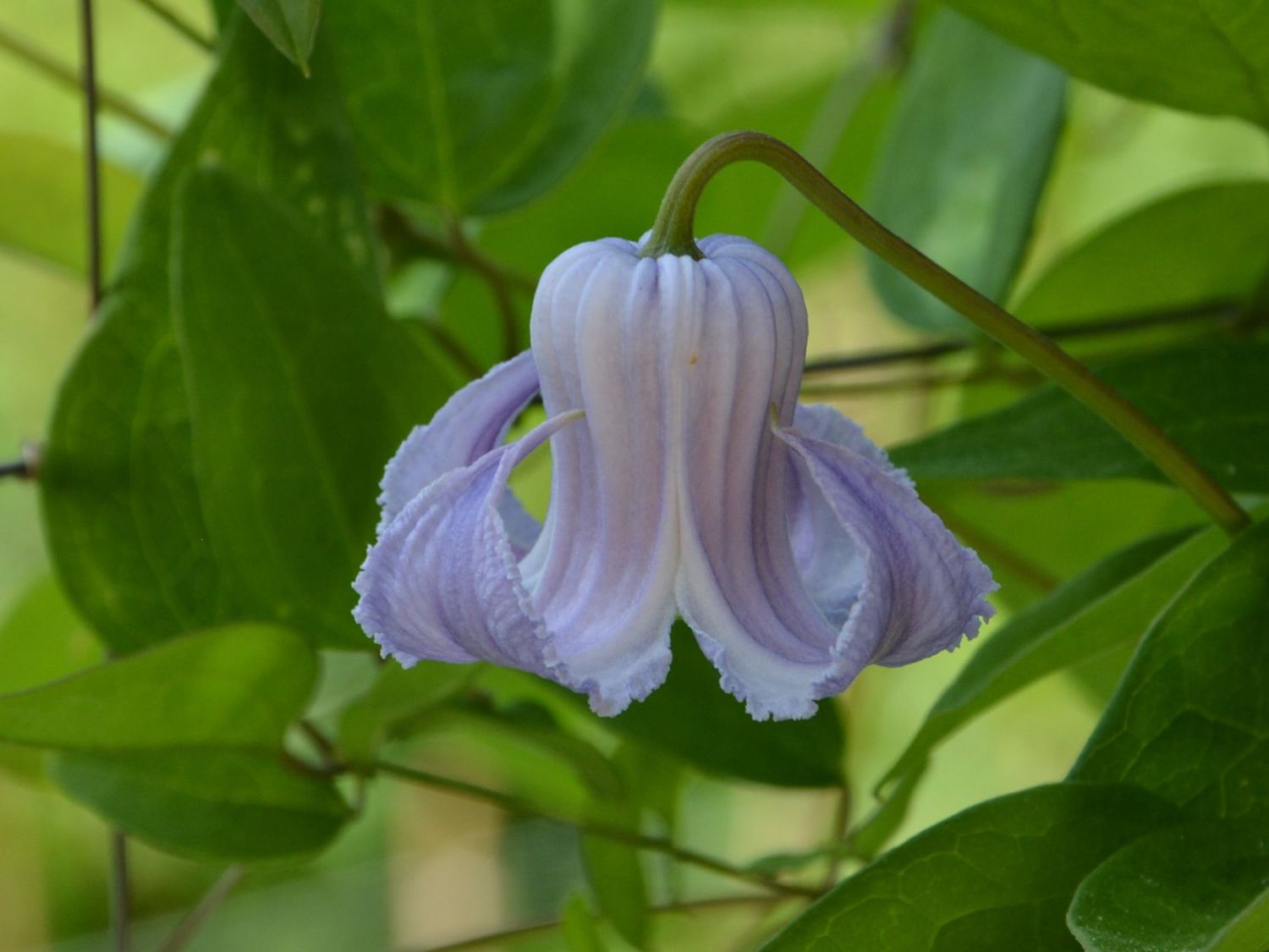 Mit der Waldrebe 'Crispa Angel' - der botanische Name lautet Clematis 'Crispa Angel' entscheiden sich Gartenliebhaber und -besitzer für eine lange blühende Pflanze, die sich durch ein besonders filigranes und anmutiges Aussehen von anderen Gartengewächsen abhebt. Dies gilt vor allem für die Blütezeit, die von Juli bis September andauert. Alleine schon die glockenähnlich anmutende Form der Blüten ziehen die Blicke magisch an. Die Blüten selbst präsentieren sich in einem Farbgewand, das sich im Laufe der Blütezeit immer wieder verändert. Sind die geschlossenen Blüten noch mit einem attraktiven dunklen Violett überzogen, erstrahlt die langsam aufblühende Blüte in einem cremefarbigen Violettblau. Diese schöne Färbung zieht sich bis zu den Blütenblattspitzen hin und deckt dort ein Farbspektrum ab, das von einem bezaubernden Lila über ein zartes Hellblau bis hin zu einem dunklen Rosa reicht. Begleitet wird dies von einem helleren, fast weißen Zentrum, was einen schönen Kontrast schafft und die Blüten besonders strahlend erscheinen lässt. Besonders betont wird das Spiel der Farben von den auffälligen, leicht gewellten oder teilweise auch gekräuselten Rändern der Blütenblätter, wobei die Blütenblätter auf der Außenseite zwei bis drei klare Rippen aufweisen. Das sorgt zusätzlich für eine außergewöhnlich schöne, exklusive Optik, die einen echten Blickfang in jedem Garten darstellt. Dabei glänzt die 'Crispa Angel' sowohl in der Einzelstellung als auch in der Gruppe. Als harmonisierende Begleiter bieten sich vor allem andersfarbige Waldreben an. Ein tolles Erscheinungsbild ergibt sich zum Beispiel aus der Konstellation mit gelb, rot oder weiß blühenden Clematis-Züchtungen. Da es sich bei der Waldrebe 'Crispa Angel' um eine kleinblumige Besonderheit handelt, integriert sie sich mit ihrer Wuchsgröße von maximal rund 150 bis 180 Zentimetern ebenfalls gut in Beeten oder im Kübel. Zudem windet sich die Waldrebe optisch eindrucksvoll auch durch kleine Sträucher.