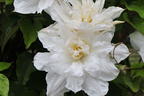 Die Waldrebe 'Isago' bringt mit ihrer leuchtend cremeweißen Blütenpracht Eleganz in den Garten. Neben ihrer Schönheit begeistert die Kletterpflanze mit dem botanischen Namen Clematis 'Isago' durch ihren zweimaligen Blütenflor. Zwischen Mai und Juni schmückt sich die Waldrebe aus der Gruppe der großblumigen Clematis-Hybriden mit großen, üppig gefüllten Blüten, in deren Mitte zartgelbe Staubgefäße leuchten. Bei der Nachblüte im Spätsommer erscheinen zwischen August und September einfache bis halbgefüllte Blütenstände. Das gefiederte, sattgrüne Laub setzt einen aparten Kontrast zu den weißen Blüten, wodurch die Pflanze eine hervorragende Fernwirkung besitzt. Die federartigen, silberweißen Samenstände verleihen der Waldrebe auch außerhalb der Blühsaison einen hohen Zierwert. Die wuchsfreudige Clematis klettert bis zu 3 m hoch. Damit eignet sie sich optimal zur Begrünung von Spalieren, Pergolen und Mauern. Auch Fassaden und Gartenzäune verwandelt die Waldrebe in ein Blütenmeer, und selbst an Bäumen windet sich die anmutige Kletterkünstlerin mühelos empor. Im Kübel auf der Terrasse oder dem Balkon macht die Waldrebe 'Isago' ebenfalls eine ausgezeichnete Figur. Rankhilfen wie Obelisken, Spaliere oder Rankbögen geben der Pflanze hierbei den richtigen Halt. Wichtig ist ein Pflanzabstand von 30 cm zur Rankhilfe. Besonders vor einem dunklen Hintergrund setzen die hellen Blüten reizvolle Farbakzente. Ein echtes Traumpaar bildet die Clematis zusammen mit einer Kletterrose.