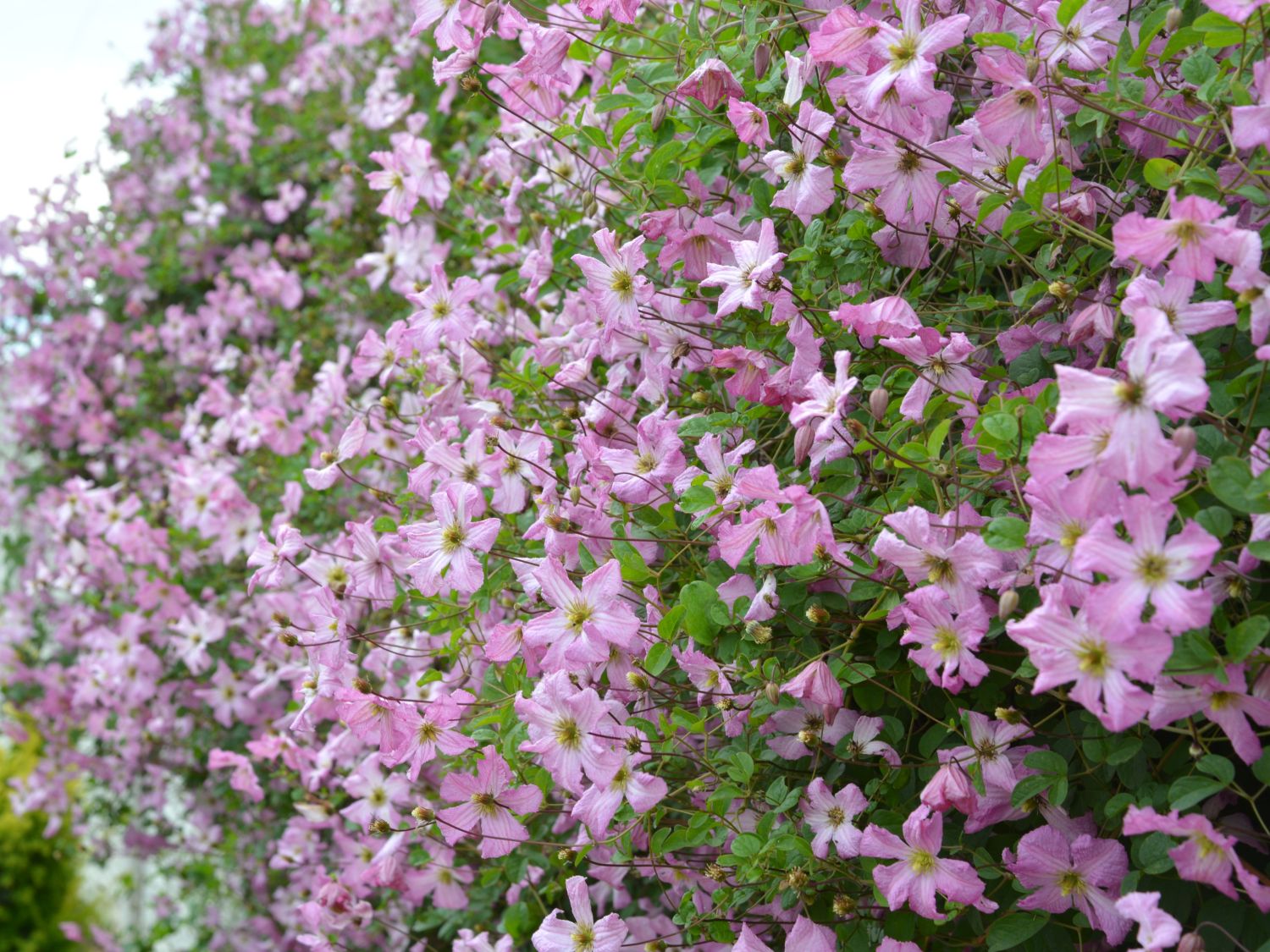Die Waldrebe 'Oberek' ist eine altbewährte Sorte, deren Blüten wie gemalt den ganzen Sommer über erstrahlen, mit einem traumhaften Laub aufwartet und durch ihren geringen Pflegebedarf schnell die Herzen von Hobbygärtnern und Pflanzenliebhabern gewinnt. Sie gehört der Clematis Viticella Gruppe an, deren Wurzeln am italienischen Mittelmeer liegen. Nicht verwunderlich, das diese Sorte ein mediterranes Charisma mitbringt, wenngleich sie aus einer polnischen Züchtung stammt. Sie ist ein Prachtexemplar, das sich in der Vergangenheit unter optimalen Bedingungen als sehr gesund, widerstandsfähig und robust bewiesen hat. Einen wahren Blickmagnet bilden von Juni bis September die unsagbar schönen und ausdrucksstarken Blüten. In zartem Hellrosa bis Altrosa verströmen sie eine romantische Magie, der kein Blick entweichen kann. Mittig zieren cremeweiße Akzente die schalenförmige Blüte, die auf jedem einzelnen Blütenblatt drei pinke Linien in Längsbalken unterteilen. Es sind vier Kelchblätter, deren Ränder unregelmäßig und wellig geschwungen für ein sinnliches Flair sorgen. Das Zentrum belebt die Blüte zusätzlich durch ein knalliges Gelb und Limonengrün. Es handelt sich um einfache Blüten, die Nektar beinhalten und für zahlreichen Insekten ein wertvolles Nahrungselement darstellen. Im Kontrast zu den zarten, nostalgischen Blüten stehen die mittelgrünen Laubblätter. Auch sie besitzen eine bedeutende Rolle für die Natur, denn in den zahlreichen Verzweigungen und versteckt hinter dem dichten Laubwuchs, finden Vögel ideale Bedingungen für ihren Nestbau. Viele Insekten nutzen (bot.) Clematis viticella 'Oberek' den sicheren Ort gegen Fressfeinde ebenfalls. Optisch zeigt sich das Blattwerk in gefiederter, ovaler Form mit spitzem Blattzulauf. Ihre Blattstiele sind dünn und sehr beweglich. Das sie sich zunutze, indem sie sich um Gegebenheiten winden. Dadurch bekommen sie einen Halt, der ihnen das Hochklettern bis maximal 400 cm sowie eine Ausweitung bis 200 cm erlaubt. Daraus entsteht ein aufrechtes Wuchsbild und eine riesige grüne Laubfläche, auf der sich die bezaubernden Blüten wie ein atemberaubender Florteppich ausweitet. Das kommt vor allem sehr edel an Zäunen und Mauern zur Geltung. In sehr große, tiefgründige Kübeln ist die Waldrebe 'Oberek' ebenfalls setzbar. Dort bleibt sie in der Regel etwas kleiner und schmaler, begeistert aber durch ebensolche fabelhaften Blütenweiden.