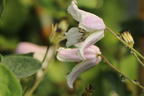 Die Waldrebe / Vasevine 'Elf' verzaubert mit reizenden Glöckchen, die sich in der Zeit von Juni bis September zeigen. Die niedlichen Glöckchen erreichen eine Größe von drei bis vier Zentimeter und erscheinen auf der ganzen Länge und Breite der Pflanze. Besonders auffallend: Die Blüten sind in ihrem Inneren weiß und von außen in einem kräftigen Rosa gefärbt. (Bot.) Clematis viorna 'Elf' wächst auf eine Höhe von 150 bis 200 cm heran. Dabei legt sie sich rund 50 bis 60 cm in die Breite. Die Waldrebe / Vasevine 'Elf' gehört zur 3. Rückschnittgruppe und erhält im Frühjahr einen Rückschnitt auf 30 bis 50 cm über dem Boden. Dies erhält die Vitalität der Pflanze und verhindert das Verkahlen der Pflanze im unteren Bereich. Diese schöne Sorte ist mit ihren zartrosa Glöckchen an jedem Standort herrlich anzusehen. Sie bereichert triste Fassaden mit ihrem Liebreiz, bietet sich als fantastischer Begleiter im Rosenbeet an oder verleiht im Kübel Balkon und Terrasse ein besonderes Flair.