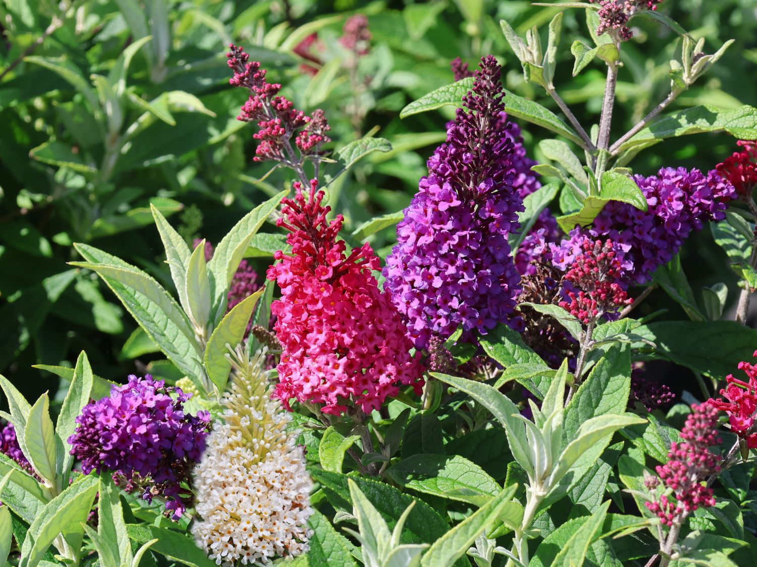 Das Zwerg-Schmetterlingsflieder / Sommerflieder Butterfly Candy ® Trio bietet eine duftende Fülle an Blüten, die sich in verschiedenen Farben an den schönen Blütenrispen bilden. Die charmanten Blüten verströmen zudem einen angenehmen Duft, der Schmetterlinge, Bienen und Hummeln zu einem Nektar-Festmahl einlädt. Die winzig kleinen Einzelblüten von (bot.) Buddleja davidii Butterfly Candy ® Trio setzen sich zu wirkungsvollen Blütenständen rispenförmig zusammen. Die Blühphase dauert von Juli bis Oktober und erstrahlt in den schönsten Farben. In einem Topf sind drei großartige Sorten miteinander zu Schmetterlingsflieder / Sommerflieder Butterfly Candy ® Trio vereint. Das Trio setzt sich aus den Sorten Buddleja davidii Butterfly Candy ® 'Lila Sweetheart', Buddleja davidii Butterfly Candy ® 'Little White' sowie Buddleja davidii Butterfly Candy ® 'Little Ruby' zusammen. Die Blüten erscheinen in einem hellen Violettblau ('Lila Sweetheart'), in reinem Weiß ('Little White') sowie in einem markant leuchtendem Rot ('Little Ruby')