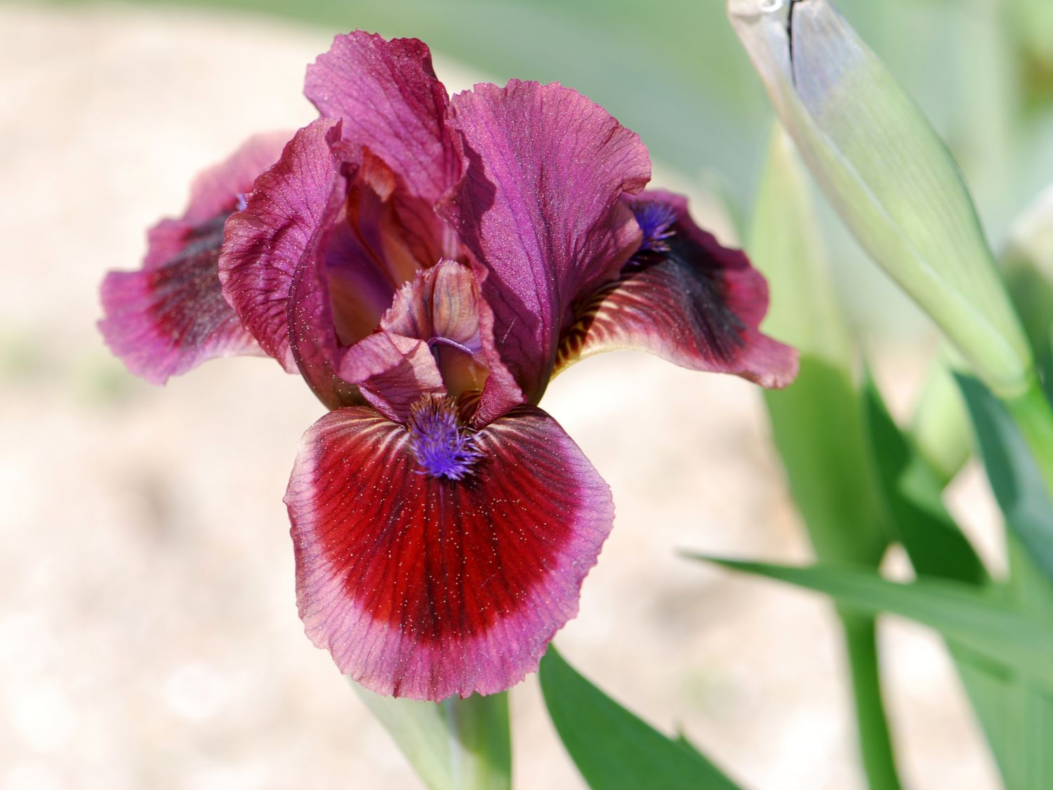 Mit ihrer wunderschönen roten Farbe und ihrem betörenden Duft verzaubert die Zwergige Schwertlilie 'Cats Eye' die Sinne. Bei dieser niedrig wachsenden Variation der Schwertlilien gilt eindeutig “klein, aber oho”! Zwar wächst die (bot.) Iris x barbata-nana 'Cats Eye' lediglich auf 35 Zentimeter in die Höhe. Doch gleicht sie dies mit einer opulenten Blüte aus. Geradezu unmöglich ist es, an dieser wundervollen Staude achtlos vorbeizugehen. Mit der auffallenden, roten Blüte zieht die Zwergige Schwertlilie 'Cats Eye' alle Blicke auf sich. Sicherlich zählt sie zu den schönsten Blumen, die in unseren heimischen Gärten erblühen. Zweifelsohne ist das Besondere an der Zwergigen Schwertlilie 'Cats Eye' ihre Blüte. Die Blütenpracht setzt sich aus unterschiedlichen Blütenblättern zusammen. Die oberen nennen sich Domblätter und sind bei Iris x barbata-nana 'Cats Eye' rot. Die nach unten gerichteten Blütenblätter heißen Hängeblätter und strahlen rot mit einem dunkelrotem Spiegel. Der Bart dieser wunderbaren Iris ist violett. Herrlich kontrastieren die auffälligen Blätter der kleinen Staude die Blüte. Sie sind von einem kräftigen und sommerlichen Grün und strecken sich gerade nach oben. Ihre schwertförmige, längliche Form ist für eine Schwertlilie typisch.