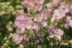 Der Zwergige Rittersporn 'Pink Ocean' setzt mit seinen großen Blütenrispen zartrosa Akzente in einer gemischten Rabatte. Auch im Pflanzkübel auf Balkon und Terrasse begeistert die maximal 50 Zentimeter hohe Staude mit ihrer anmutigen Gestalt. Von Juni bis August schieben sich viele kräftige Blütenstängel aus dem dunkelgrünen, bizarr gelappten Laub. In einer bis zu 20 cm langen Traube sitzen dicht an dicht die halbgefüllten Einzelblüten. Ihre zarte pastellrosa Farbe ist an den äußeren Rändern mit einem violetten Fleck gezeichnet. In die helle Mitte setzen drei gelbe Flecken unerwartete Glanzlichter. (Bot.) Delphinium grandiflorum 'Pink Ocean' vereint in seiner kleinen Gestalt einen kompakten, kräftigen Wuchs, stabile Blütenstände und langes Leben. Sein dunkelgrünes, tief eingeschnittenes Laub weist die für alle Ritterspornsorten typische Handform auf. In einer kleinen Gruppe von drei bis fünf Pflanzen zeigt sich der Zwergige Rittersporn 'Pink Ocean' von seiner besten Seite. Schöne Pflanzpartner sind niedriger Phlox, Storchschnabel und Gräser.